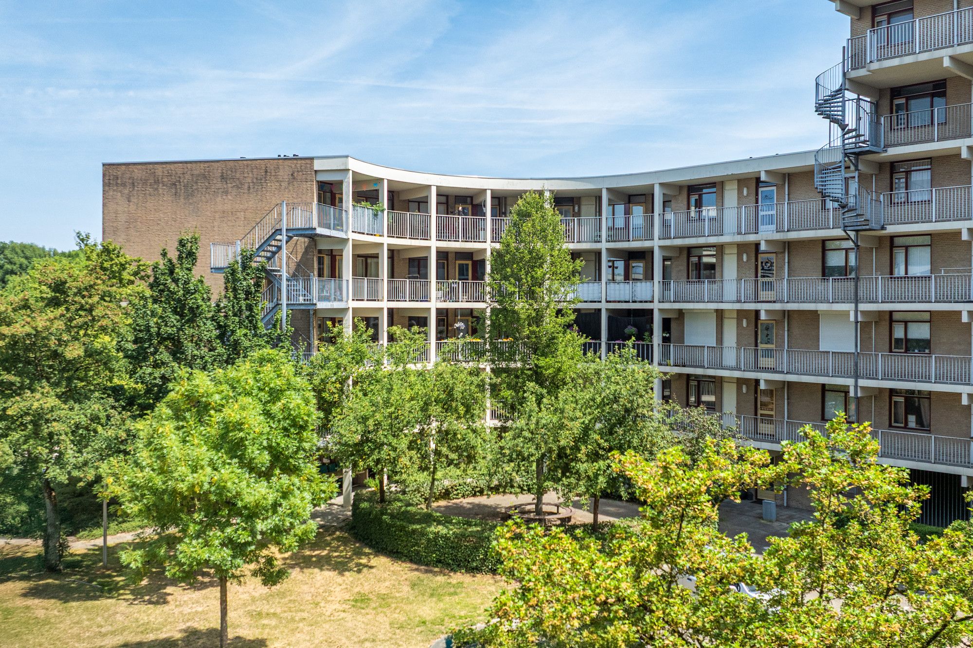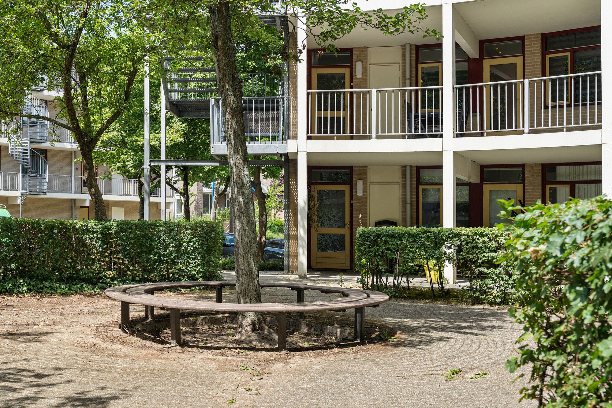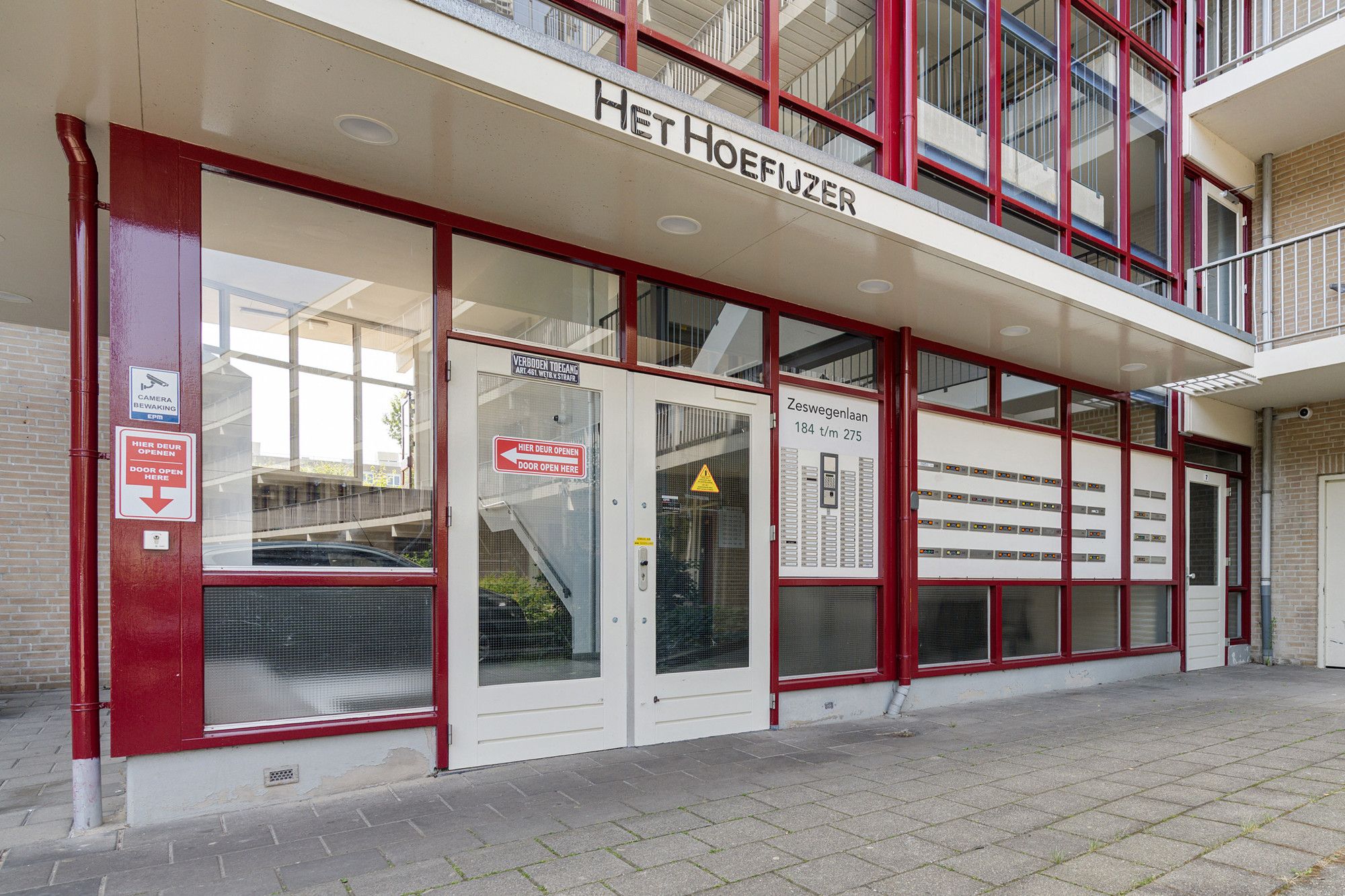 Via de centrale entree met bellentableau en brievenbussen is er toegang tot de privé berging en het appartement.