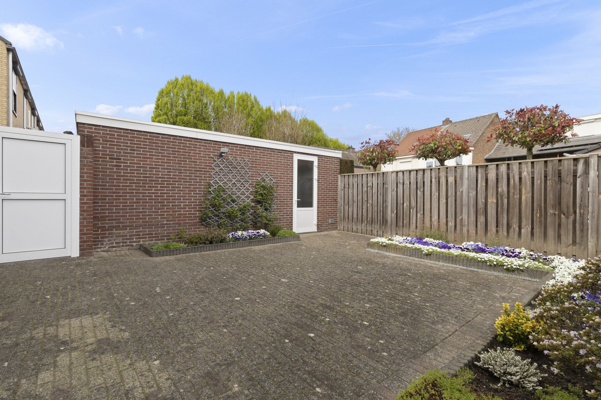 De verzorgde achtertuin met veel privacy beschikt over een terras, zijingang, borders en eigen houten schutting.