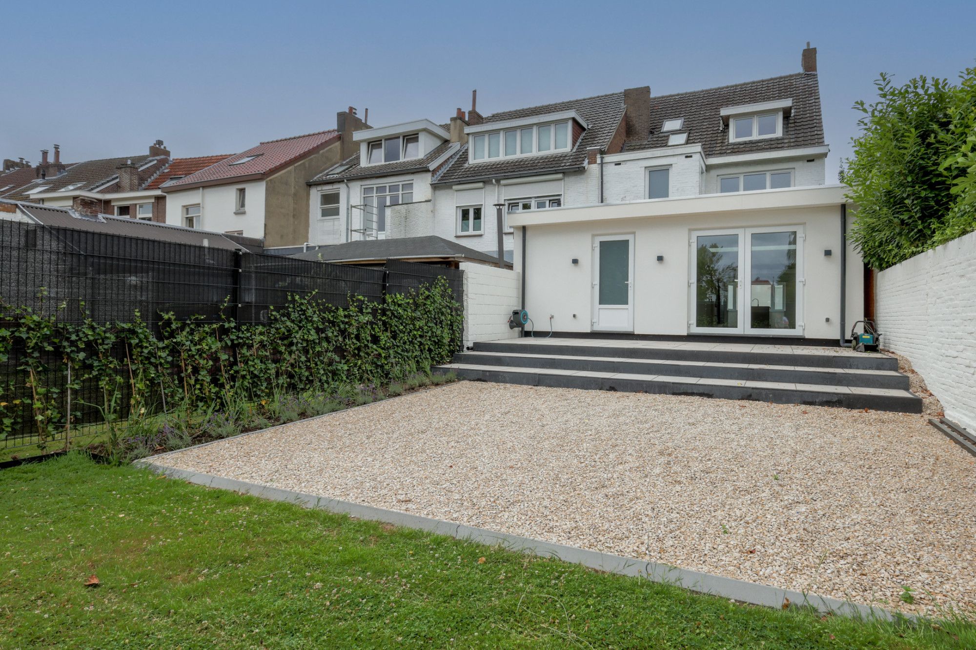 De sfeervolle zonnige achtertuin is v.v. een ruim terras.