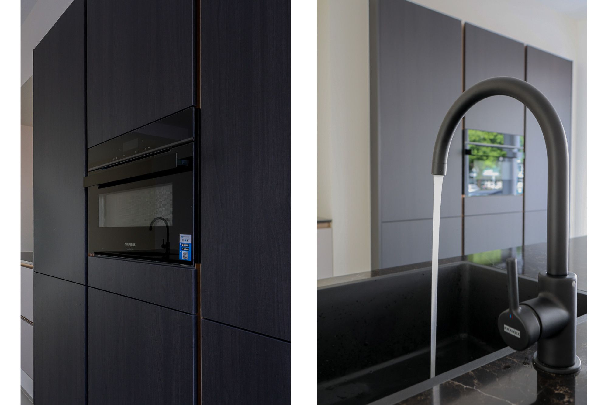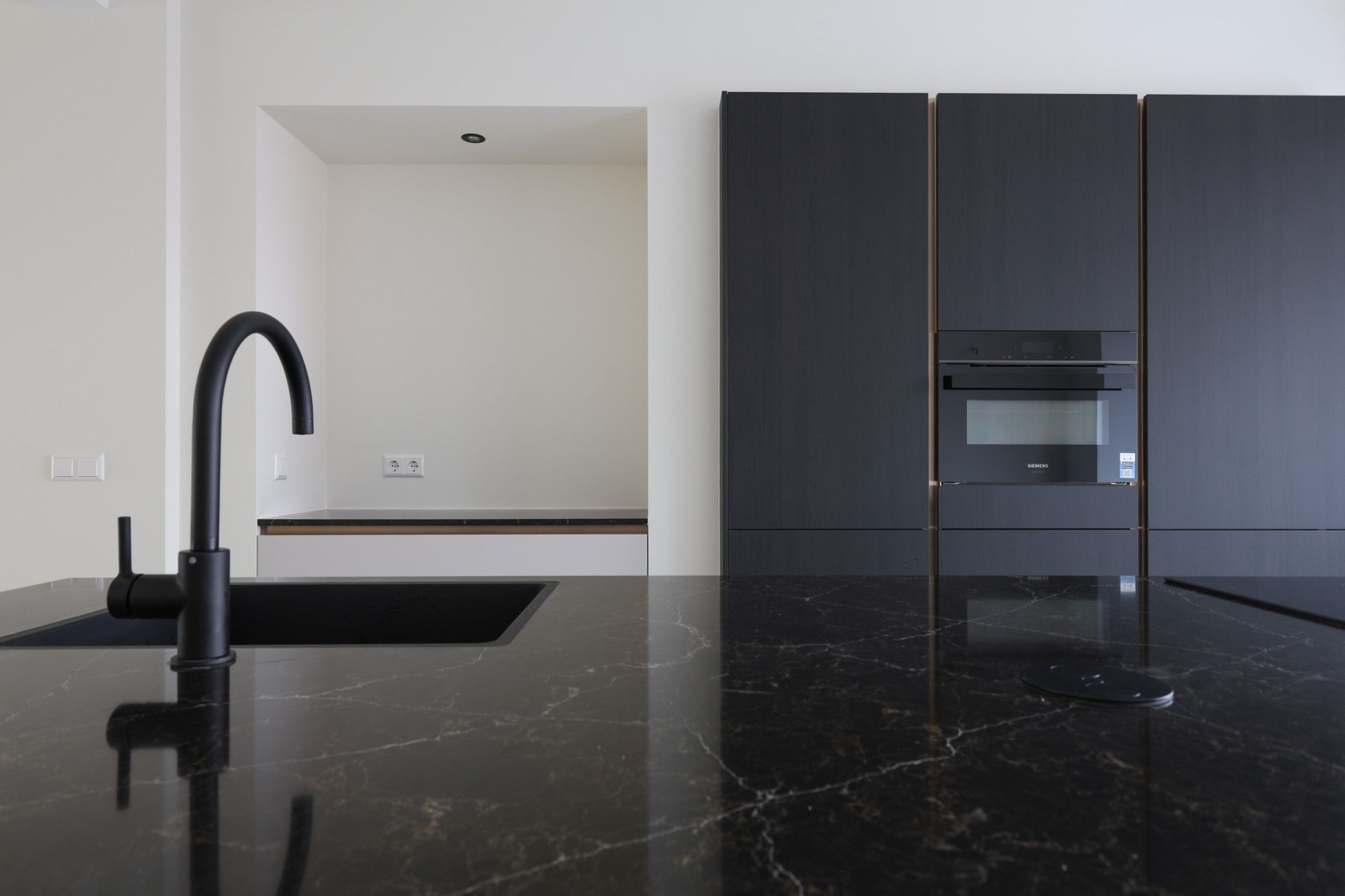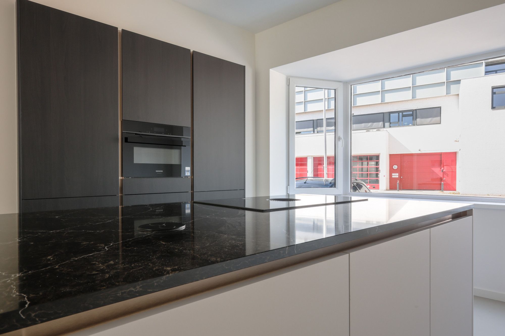 De ruime hal- entree biedt toegang moderne toiletruimte (v.v. zwevend closet en fonteintje), deur naar kelder en toegang tot living. De riante living (ca. 48 m2) kenmerkt zich door de vele daglichttoetreding en ruimtelijke indeling. Tevens heeft men vanuit de woonkamer toegang tot provisieruimte (2,72 m x 2,82 m), open keuken en middels dubbele openslaande deur toegang tot de tuin. De moderne luxe open (5,83 m x 3,98 m) is aan de voorzijde gelegen en v.v. kookeiland, ruime kastenwand en navolgende Siemens apparatuur; combi-oven, koelkast, vaatwasser en 4-pits inductiekookplaat.