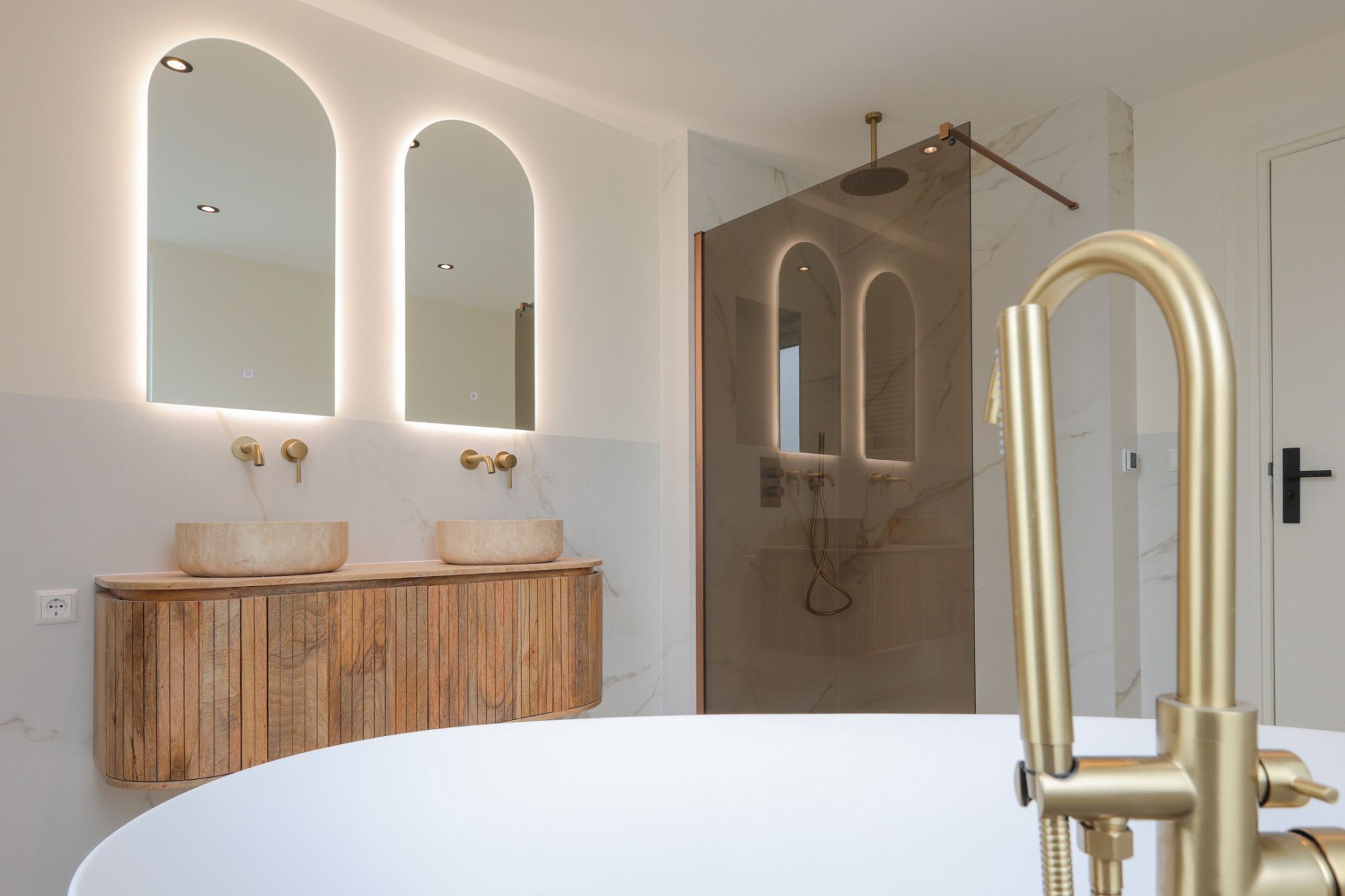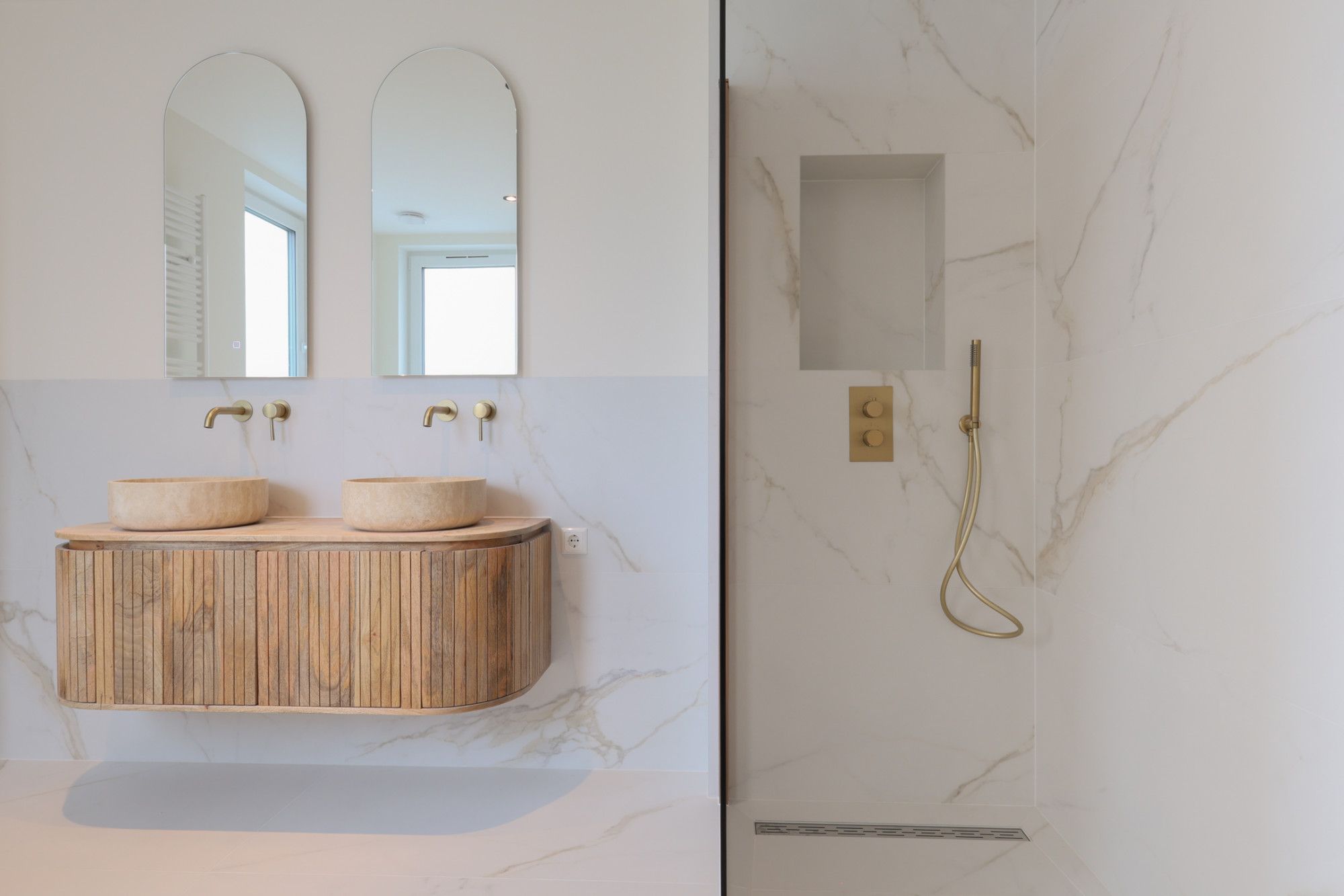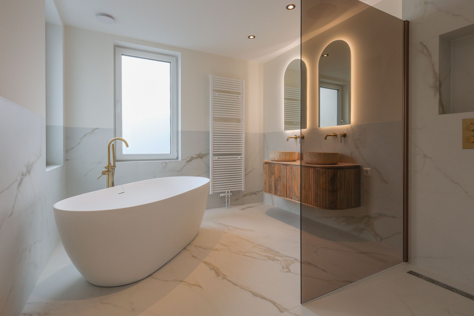 Overloop met toegang tot 2 slaapkamers, luxe badkamer en wasruimte (incl. separaat toilet)