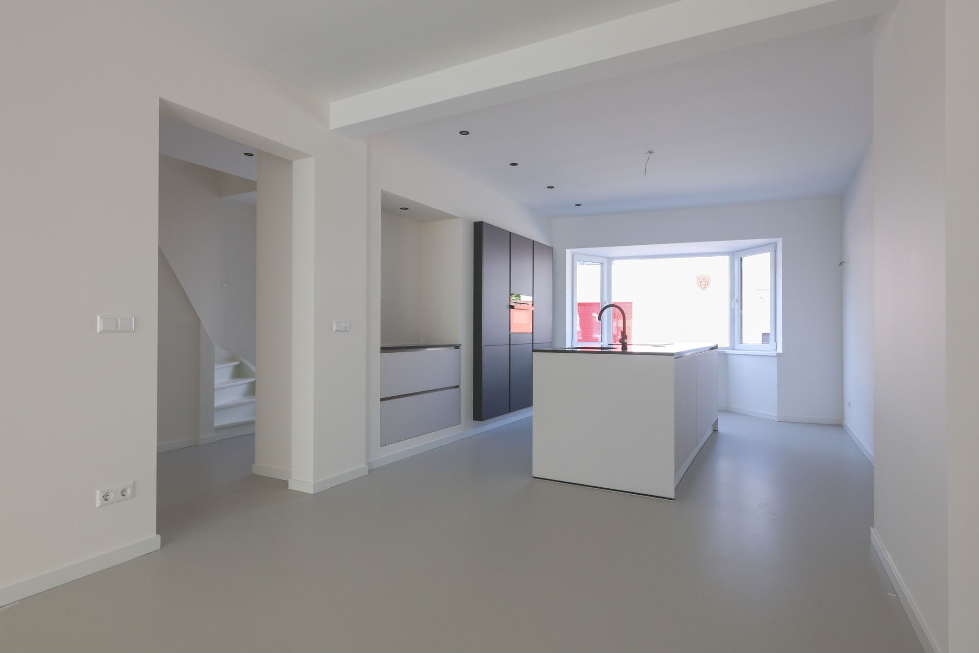 Begane grond: Is geheel v.v. vloerverwarming en een beton serene vloer.