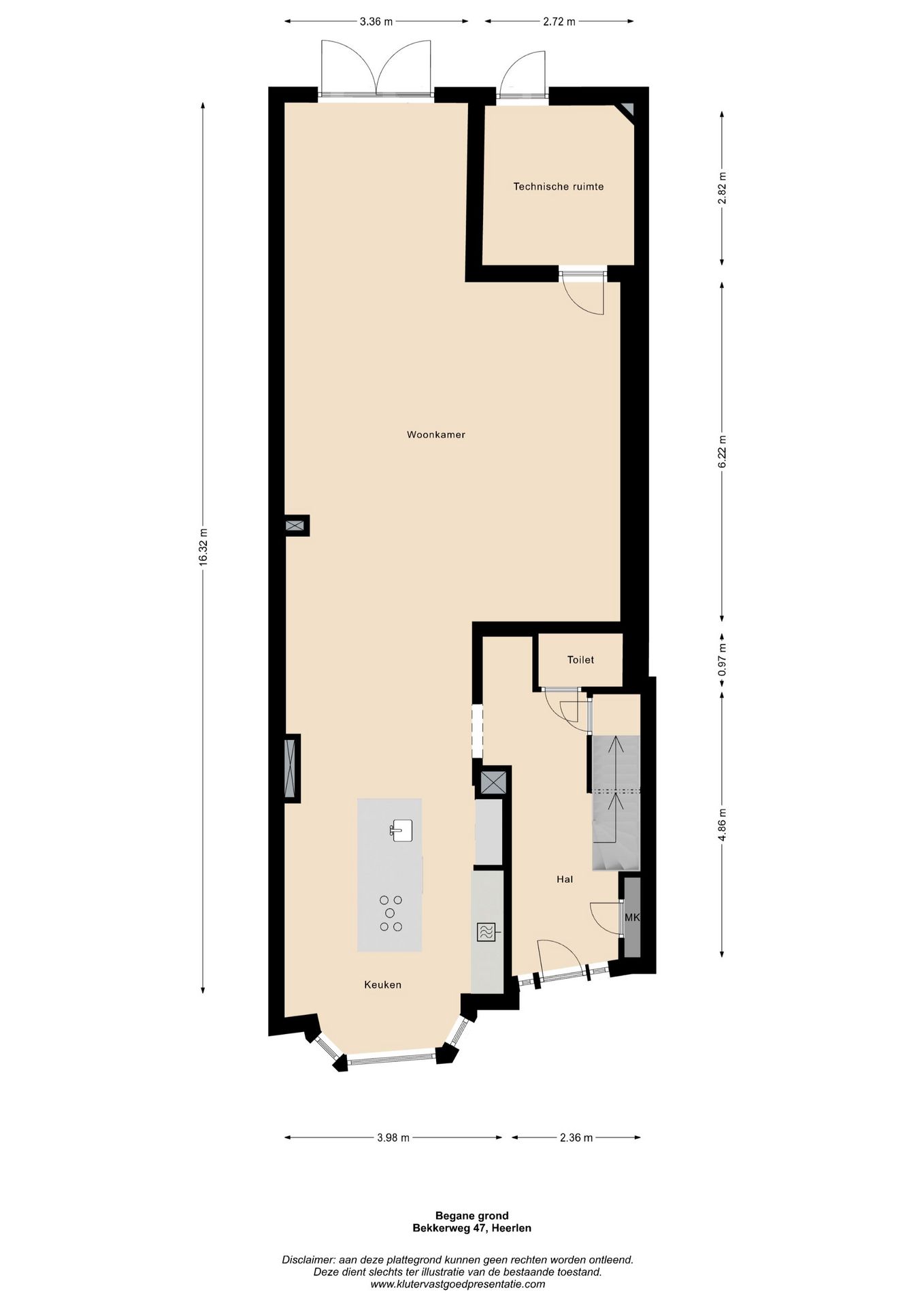 Alle door ons verstrekte informatie omtrent onroerende zaken moet worden beschouwd als een uitnodiging om in onderhandeling te treden en is geheel vrijblijvend. Maten en informatie bij benadering. Aan deze beperkte informatie kunnen geen rechten worden ontleend. Koper is te allen tijde gerechtigd voor eigen rekening een bouwkundige keuring te (laten) verrichten dan wel andere adviseurs te raadplegen teneinde een goed inzicht te verkrijgen over de staat van onderhoud. De waarborgsom/bankgarantie bedraagt 10% van de koopsom. De koper dient deze 2 weken ná het vervallen van de ontbindende voorwaarden bij de desbetreffende notaris te deponeren. Voor nadere inlichtingen kunt u contact opnemen of een afspraak maken met ons kantoor.