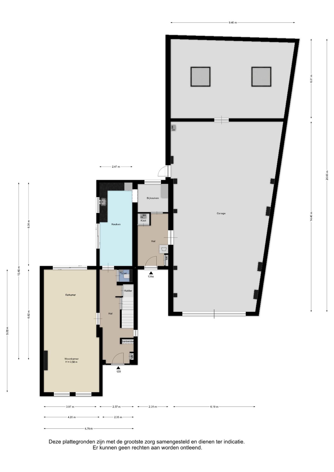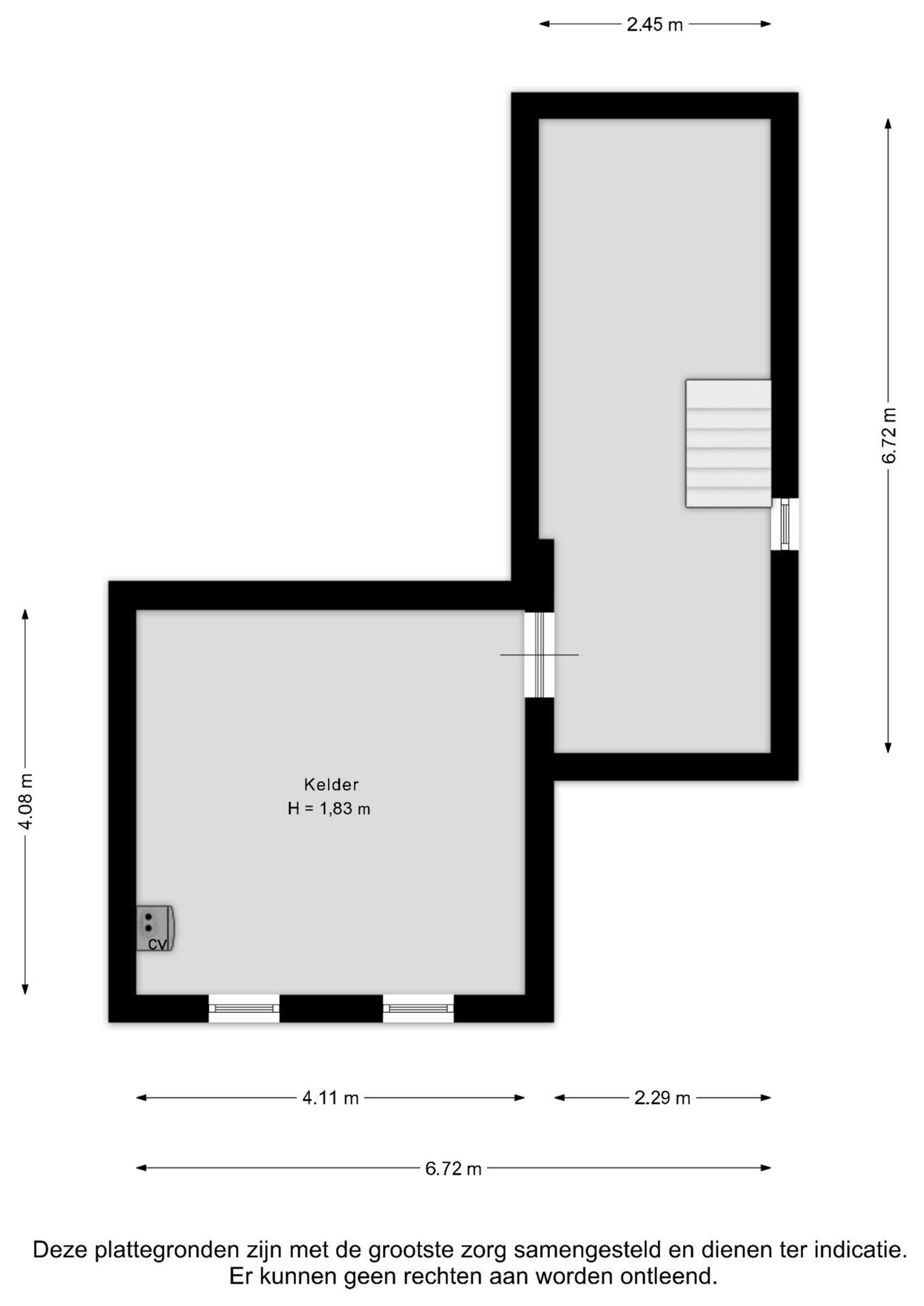Souterrain: Grotendeels onderkelderd.