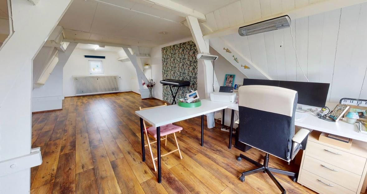 Via een vaste trap te bereiken zolderkamer met laminaatvloer.