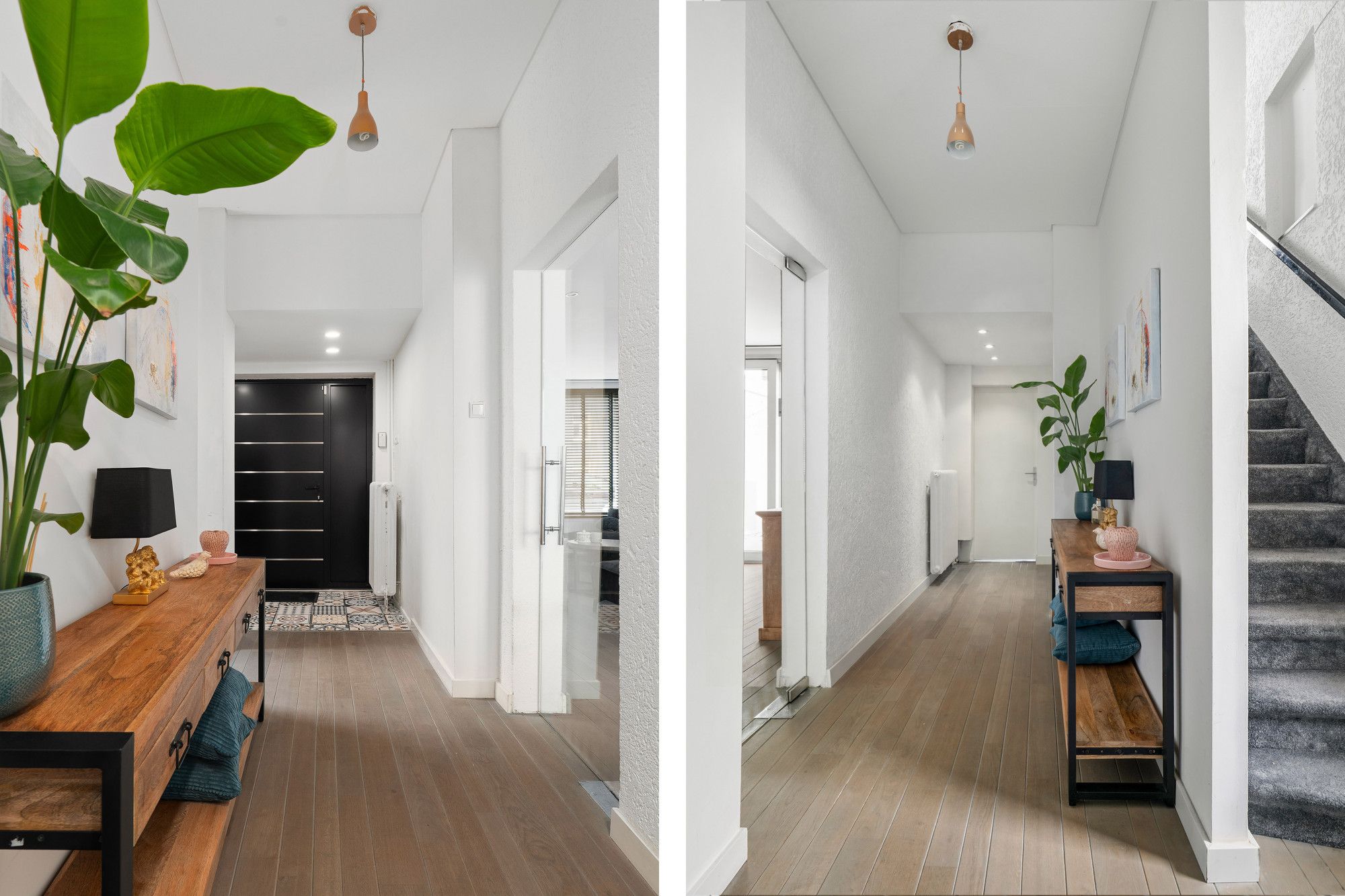 Vanuit een tweede hal heeft men toegang tot de ruime dubbele garage.
