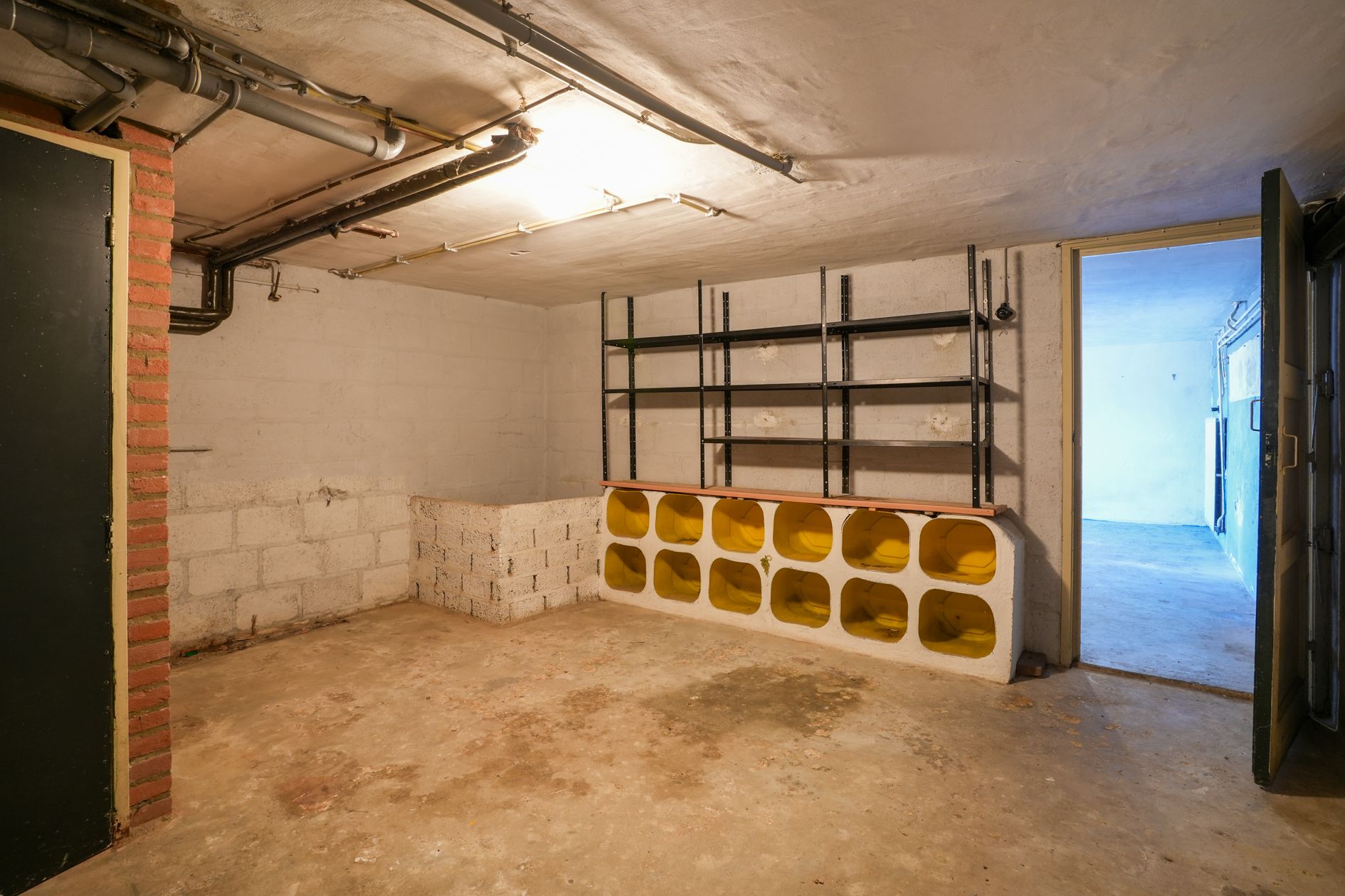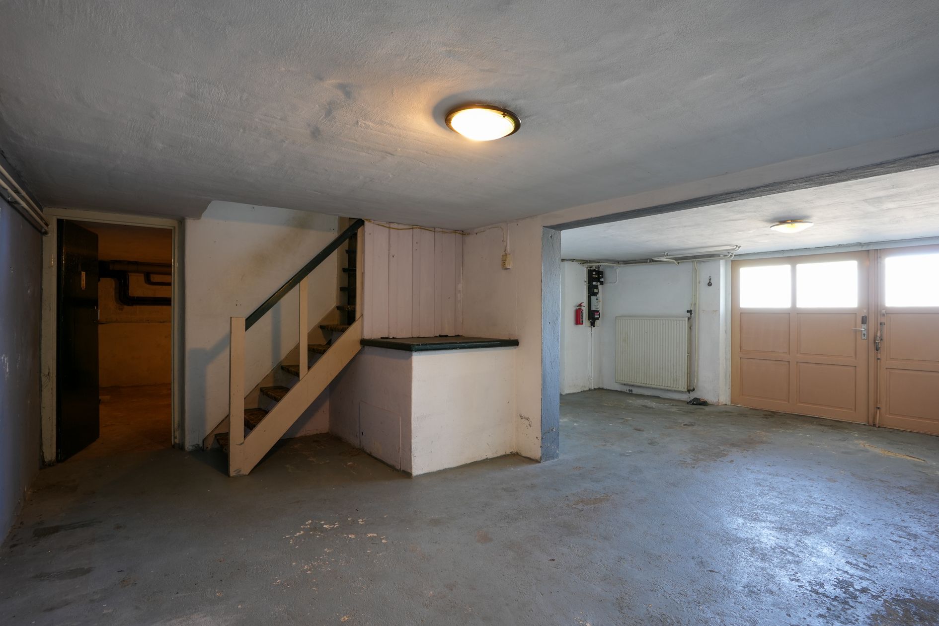 Een open houten trap leidt naar het souterrain, waar zich een ruime garage bevindt, evenals diverse overige vertrekken en een aparte cv-berging. De cv-ketel (huur, bouwjaar 2012) is hier opgesteld. De woning is voorzien van rolluiken en zowel enkele als dubbele beglazing.