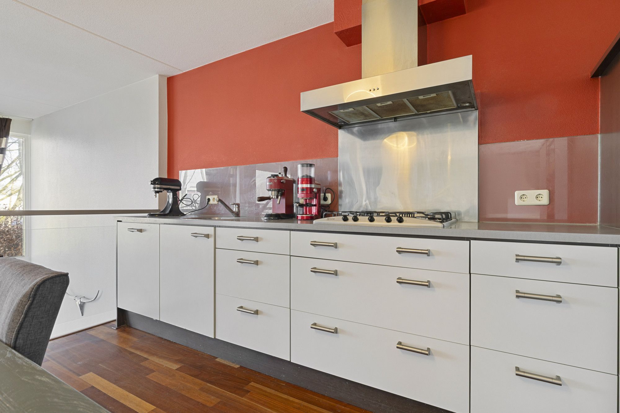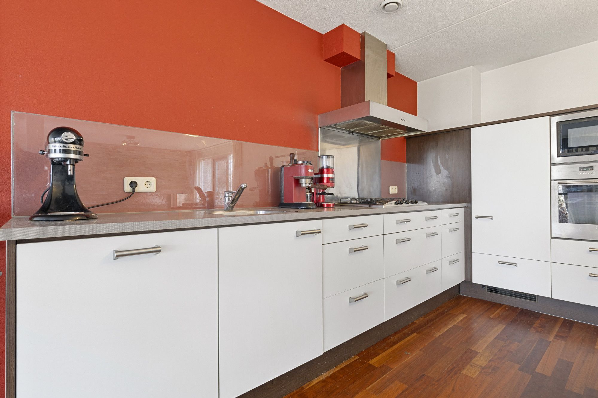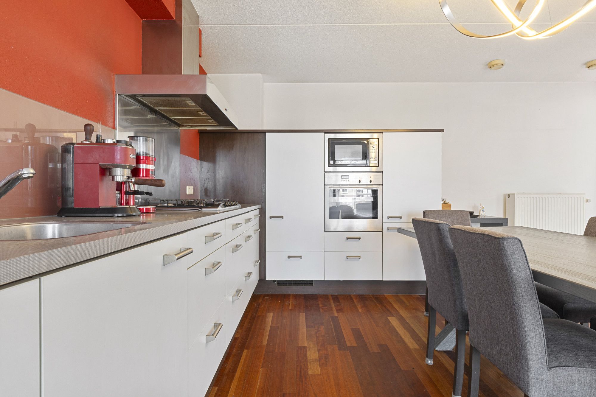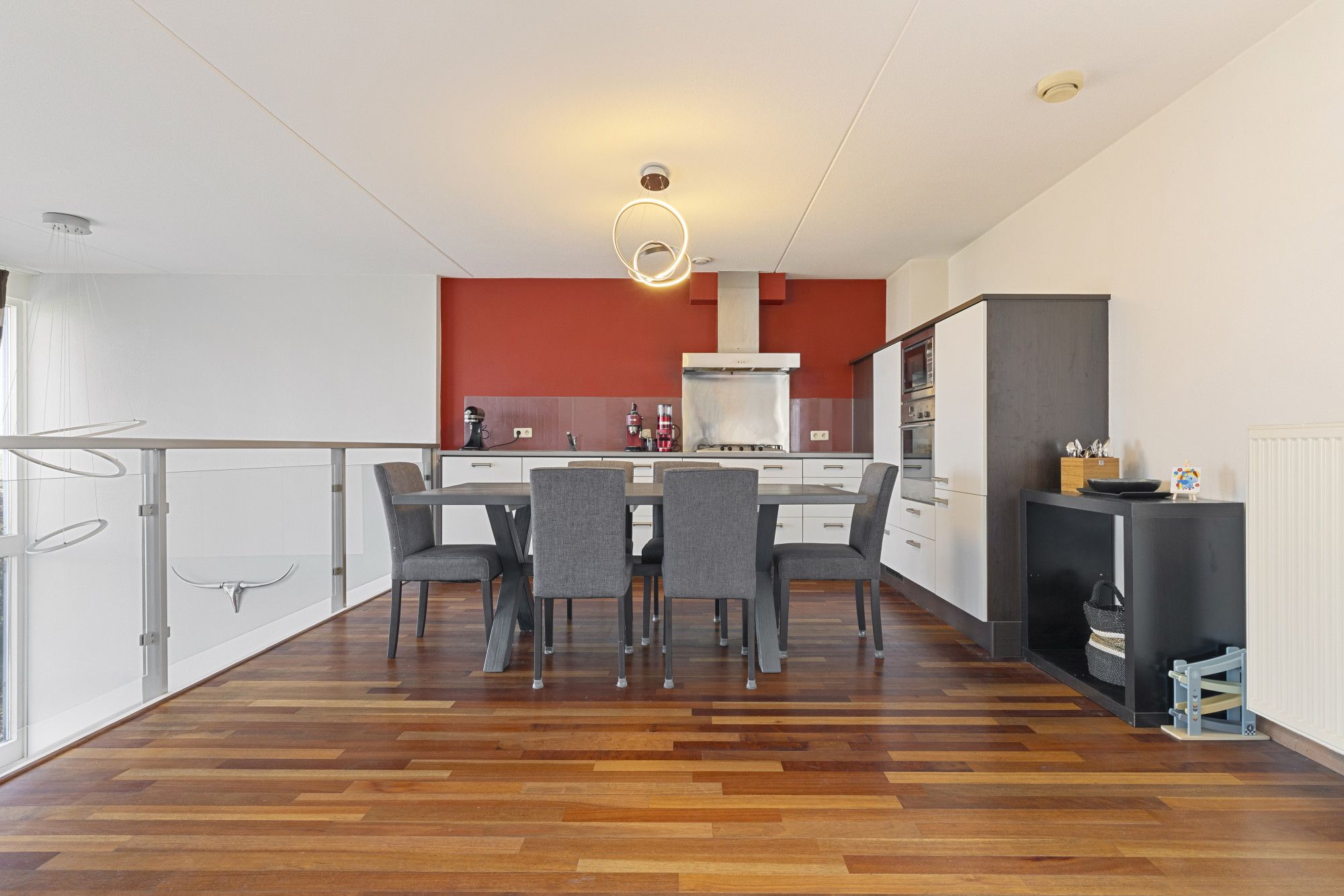De trap brengt je naar de 'foodie-hemel'. Een leefkeuken met dezelfde parketvloer en alle hedendaagse apparatuur. Terwijl je kookt, houd je contact met de eettafel of stap je even het balkon aan de voorzijde op voor een frisse neus.