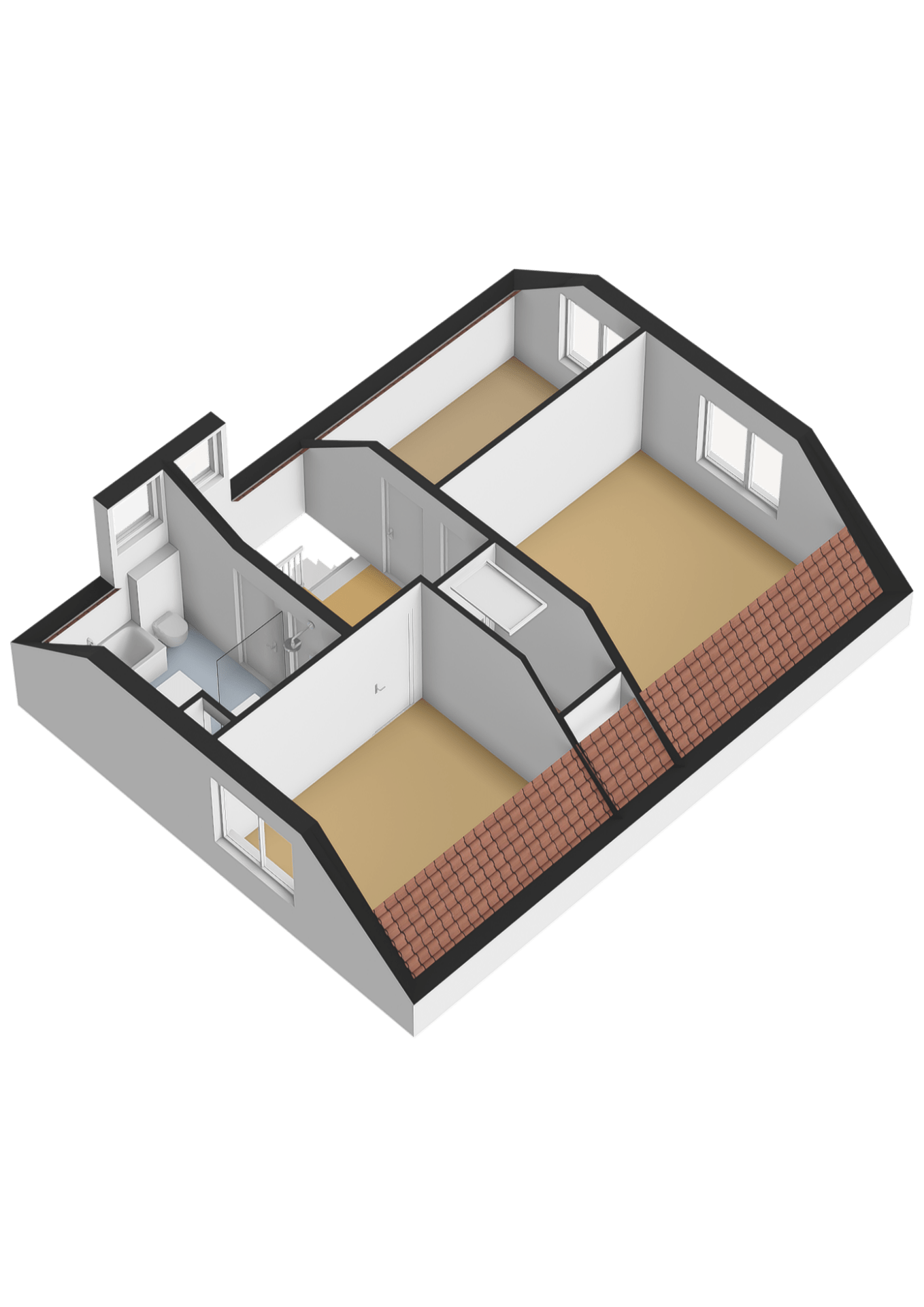 - Verzorgde badkamer met douche, toilet en aansluitingen voor wasmachine en droger