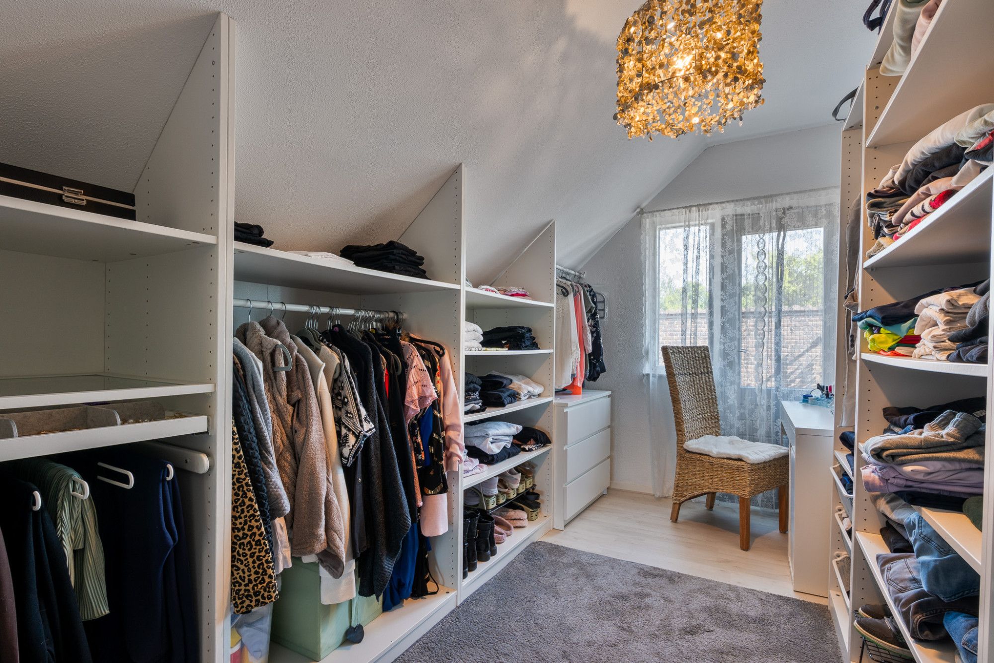 - Daarnaast is er een praktische berging, momenteel in gebruik als royale inloopkast, met een wateraansluiting voor bijvoorbeeld een wasmachine of wastafel.