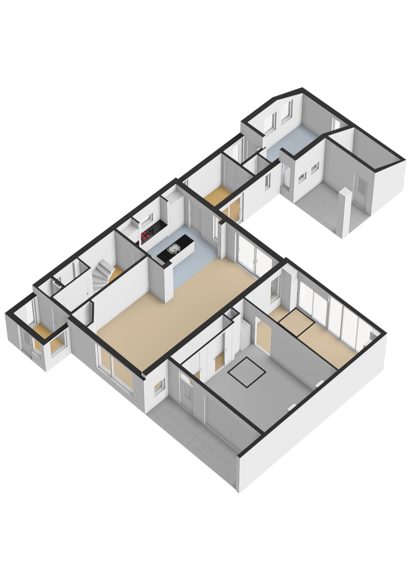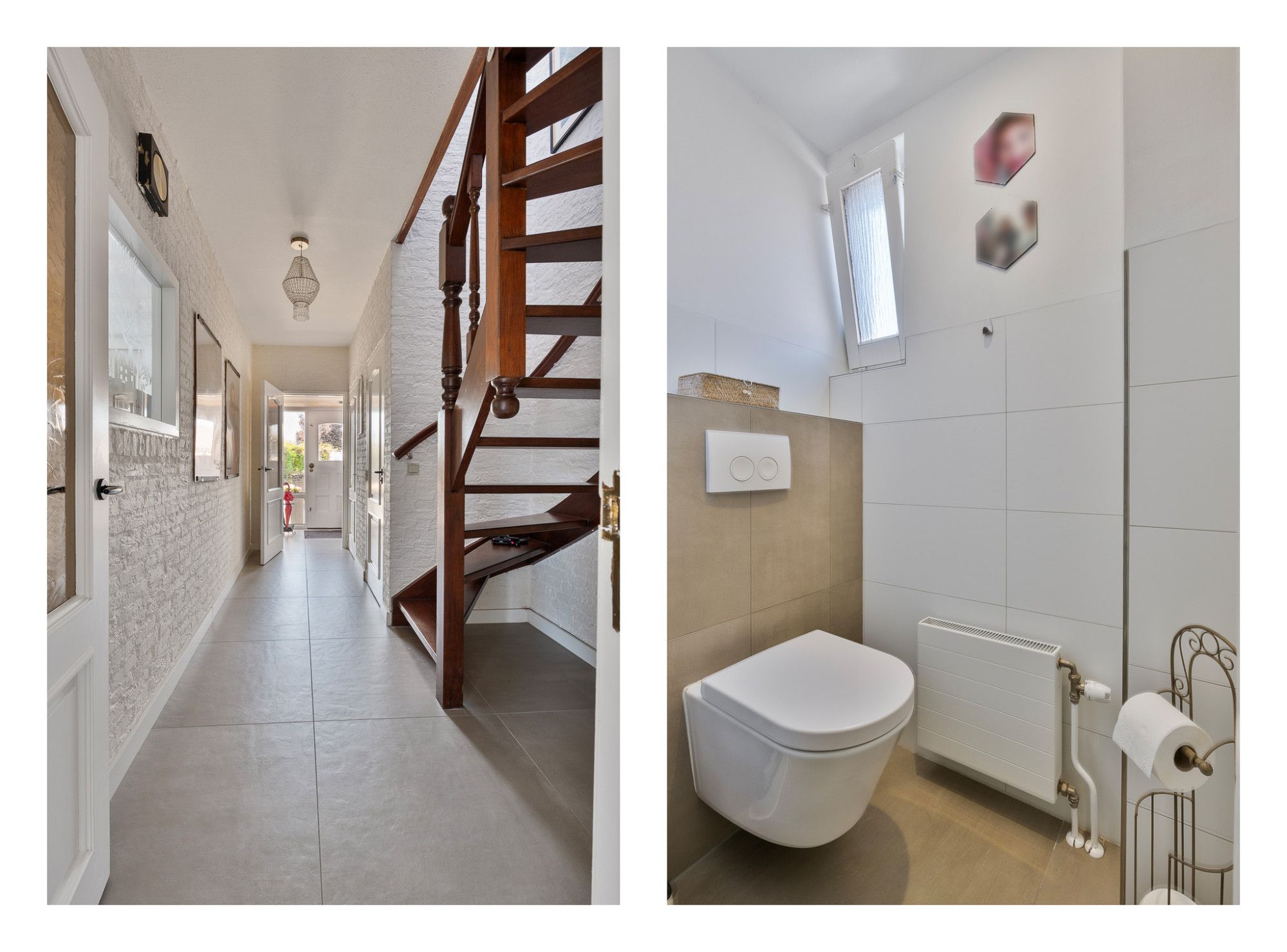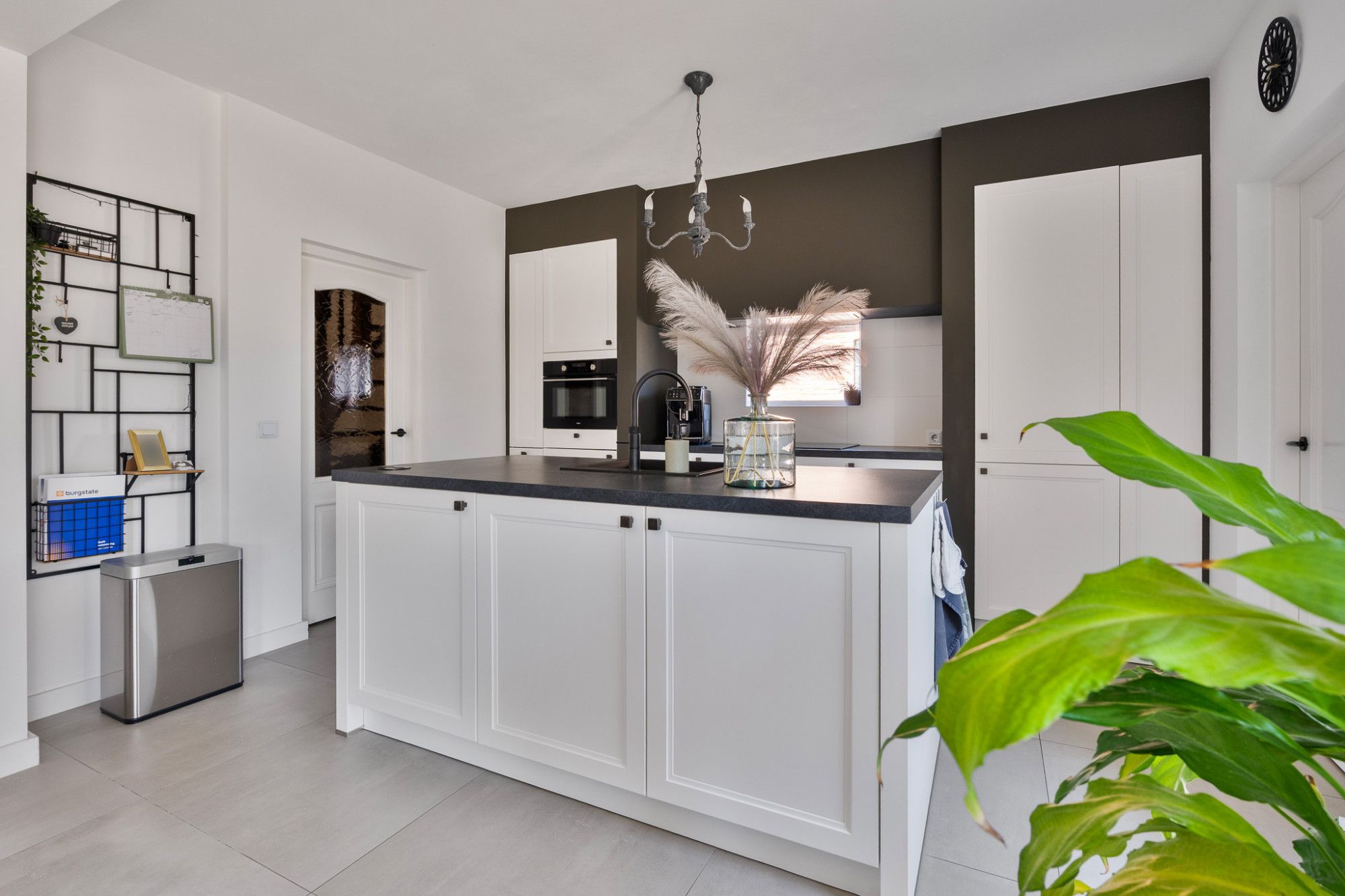 - Aansluitend bevindt zich een handige bijkeuken (ca. 6m2) met deur naar de tuin én doorgang naar een multifunctionele kantoor- of hobbyruimte (ca. 12,5m2), compleet met eigen sanitaire voorzieningen. Ideaal voor thuiswerken, een praktijk aan huis of als gastenverblijf.