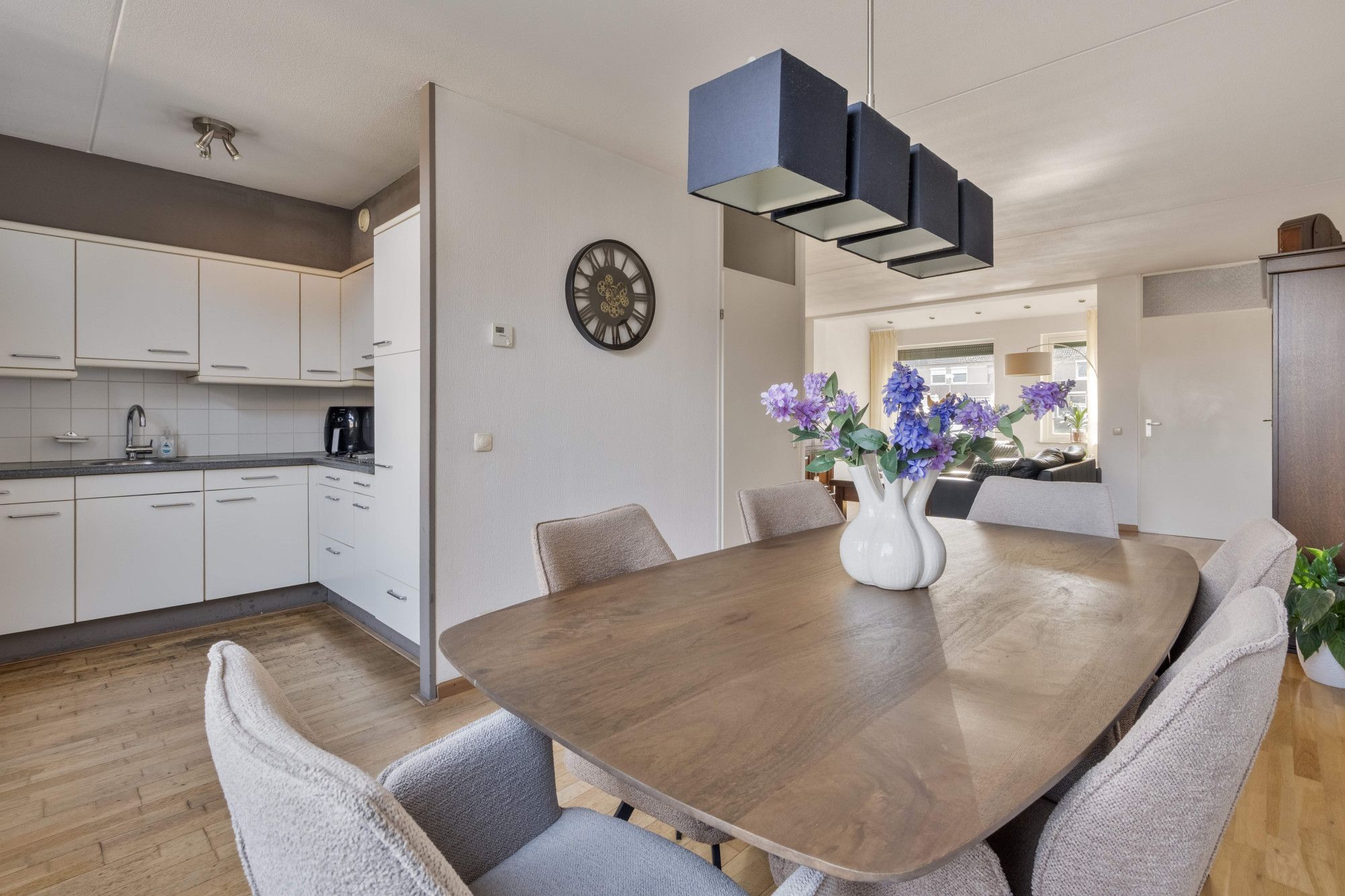 -Je komt binnen in een nette hal waarna je direct verrast wordt door de fijne living (ca. 34m2). Aan de voorzijde is de zithoek uitgebouwd, waardoor een lichte en ruime plek is ontstaan met uitzicht op de vijverpartij. Aan de achterzijde is er ruimte voor een royale eethoek.