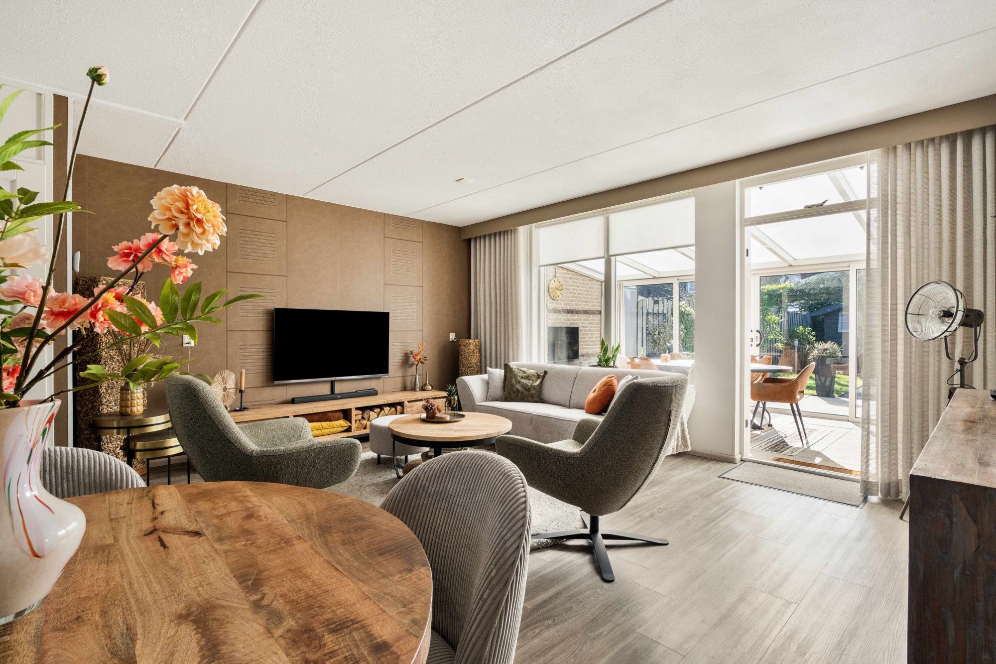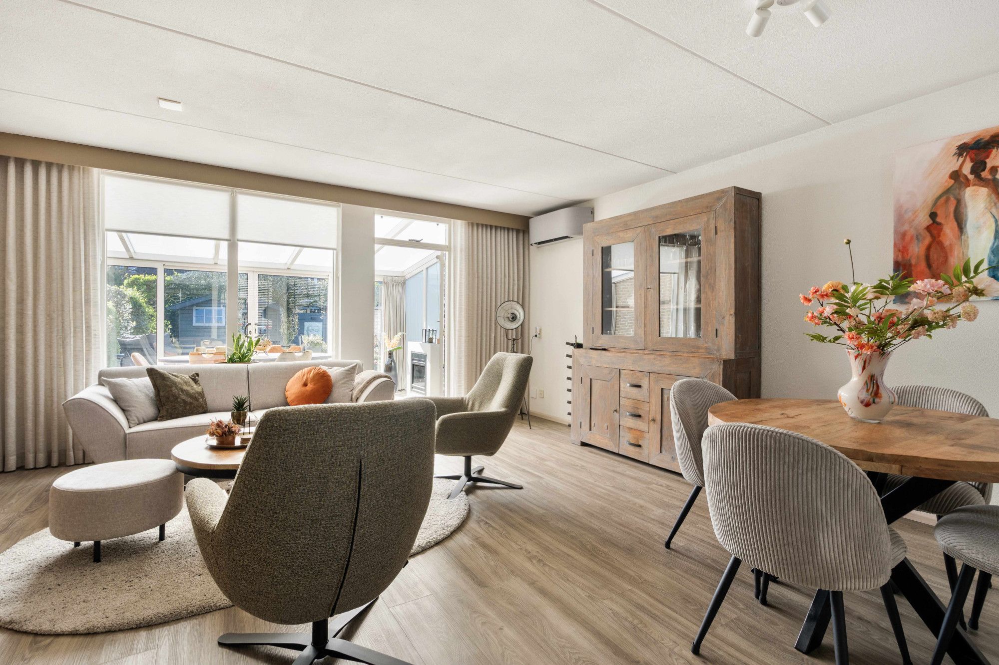 De woonkamer is ruim en licht en biedt voldoende plek voor een comfortabele zithoek en eethoek. De woonkamer is daarnaast voorzien van airconditioning, wat zorgt voor een aangenaam binnenklimaat tijdens warme dagen. Aansluitend aan de woonkamer bevindt zich de serre. Deze serre vormt een mooie verlenging van de leefruimte en wordt momenteel gebruikt als extra zitruimte. Via een compleet glazen wand met 2 schuifpuien in de serre heeft u direct toegang tot de tuin, veel lichtinval en een prettige verbinding tussen binnen en buiten.