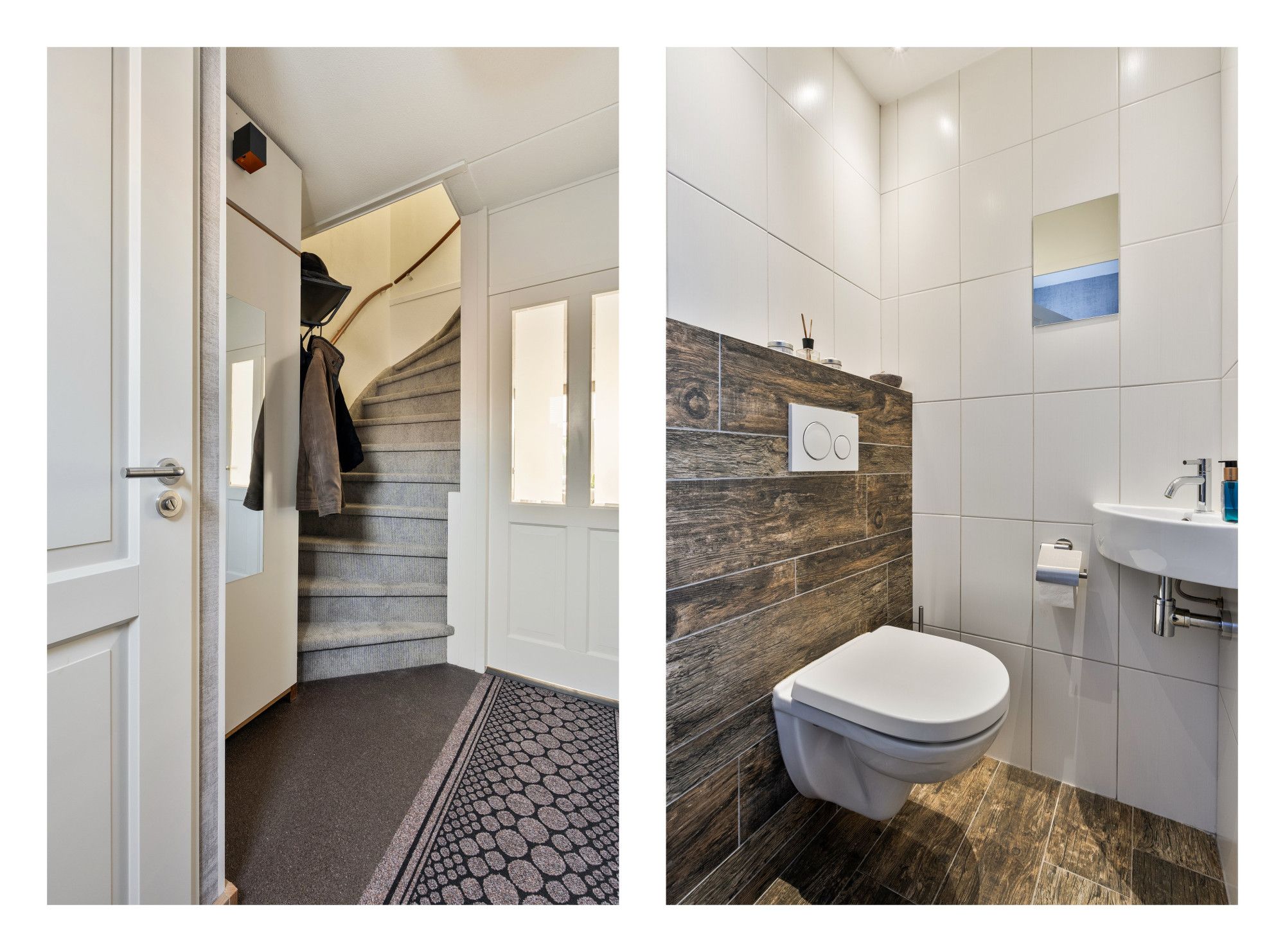 Via de voordeur komt u binnen in de hal. In deze hal bevinden zich de vernieuwde meterkast en een modern hangtoilet met fonteintje. Vanuit de hal is er toegang tot de woonkamer en de keuken.