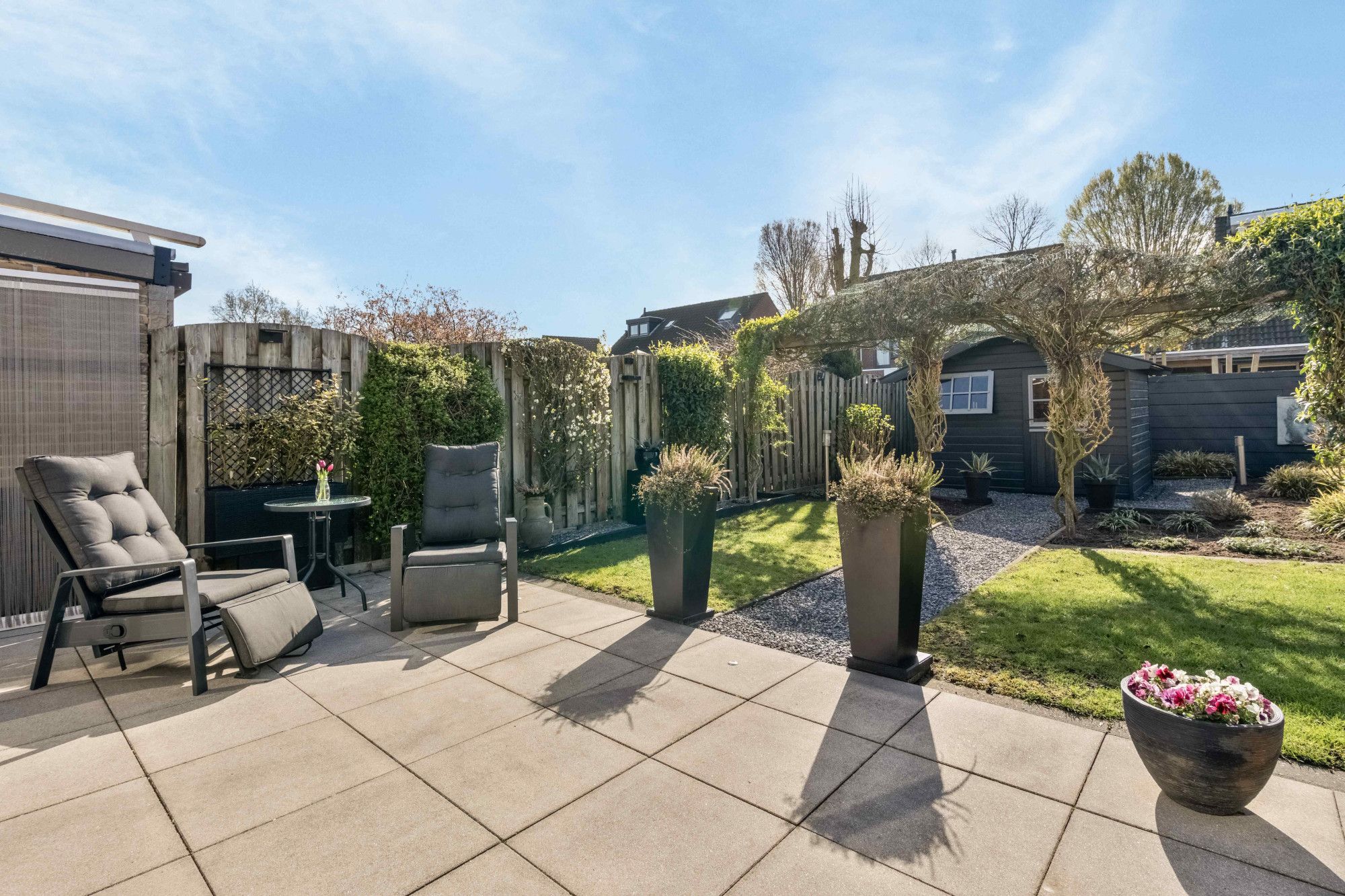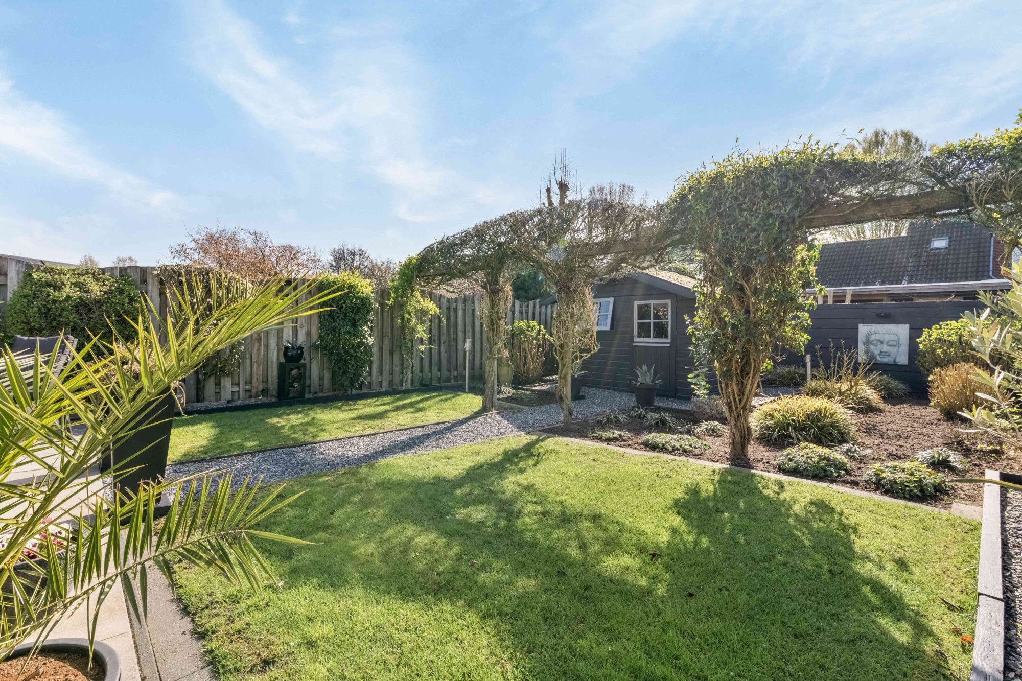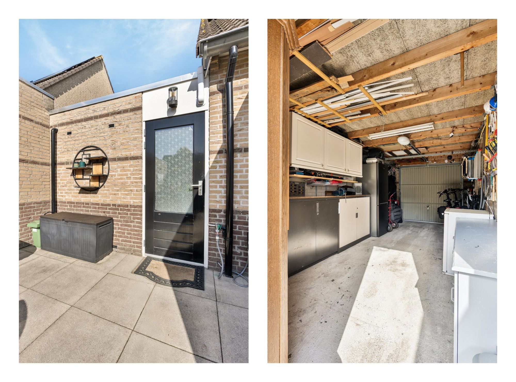 De tuin is circa 115 m² groot en netjes aangelegd met een terras aan huis, gazon, plantenborders en een tuinhuis achterin de tuin. Dankzij de grootte en de indeling is het een fijne plek om te ontspannen en buiten te zitten. Vanuit de tuin is ook de garage bereikbaar welke is voorzien van elektra en een elektrische garagedeur. Voor de garage ligt de oprit waar u makkelijk kunt parkeren. Op de oprit is tevens een laadpaal aanwezig voor het opladen van een elektrische auto.