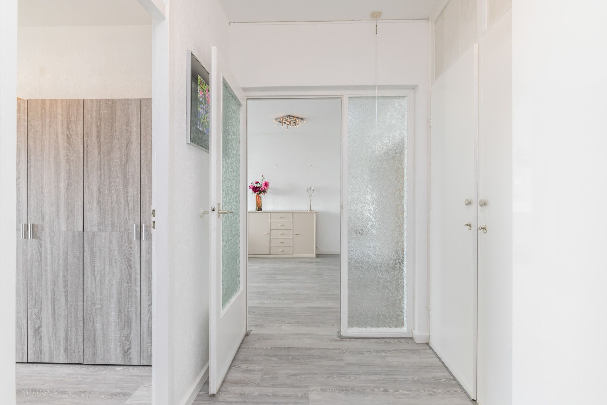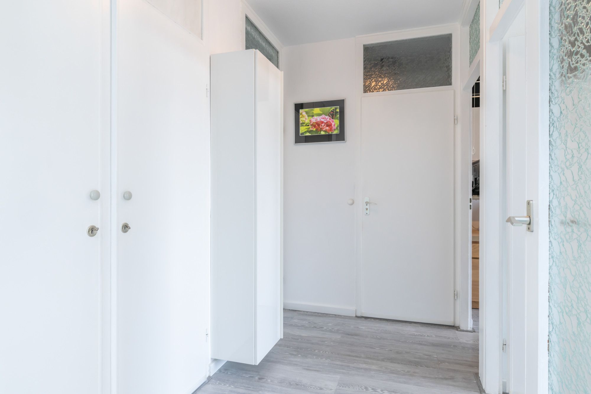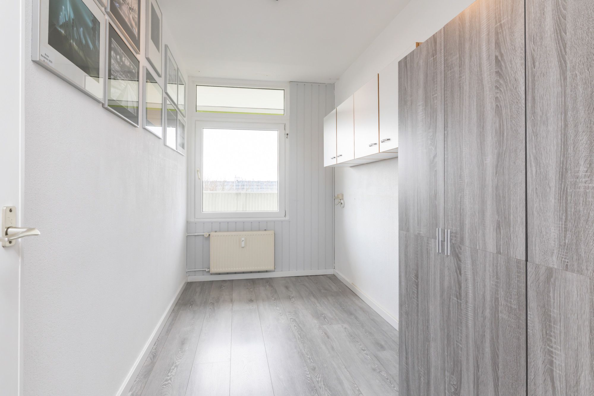 Via het tussenportaal met handige muurkast en separate kast met witgoedaansluitingen zijn de overige vertrekken bereikbaar.