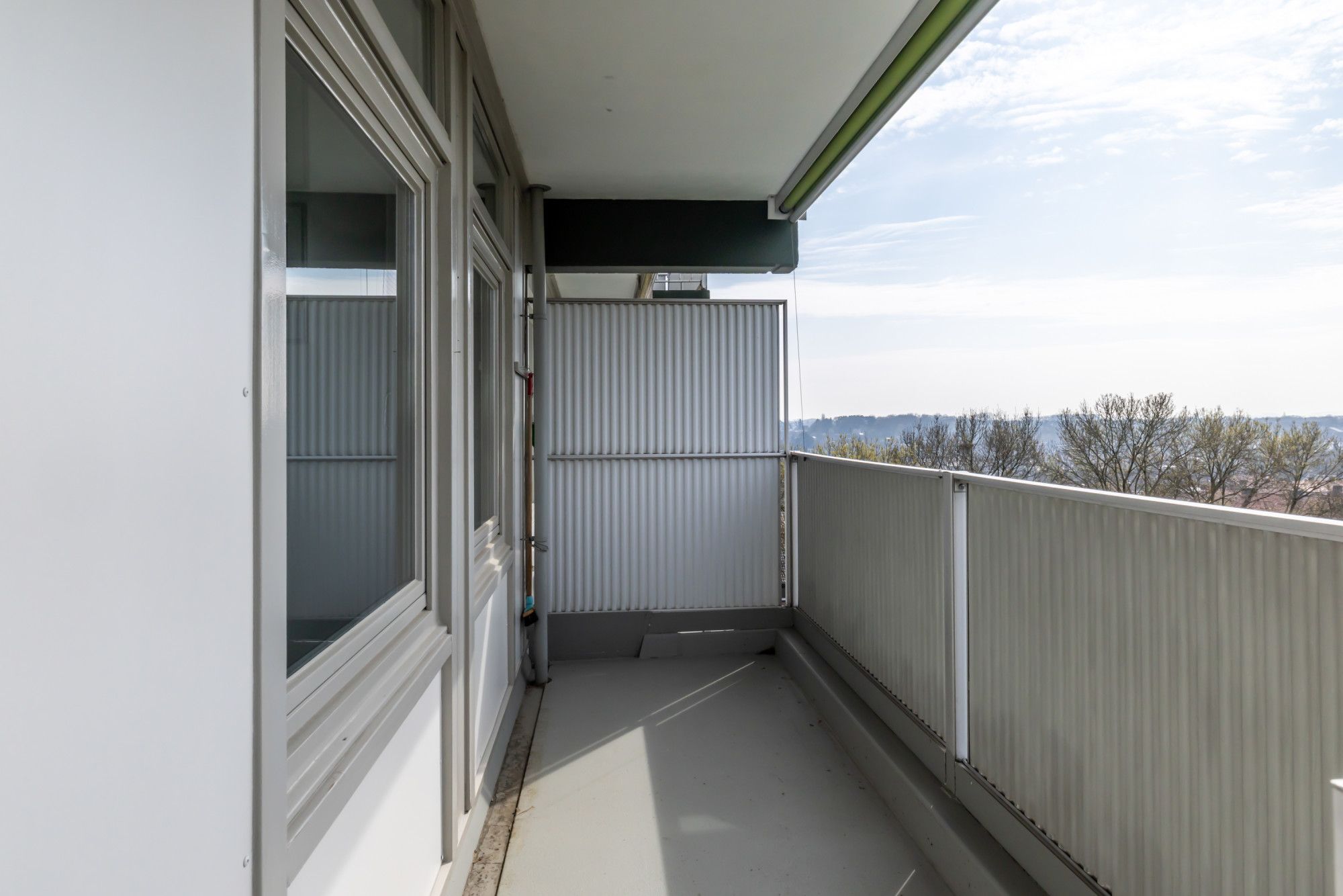 Het ruime balkon aan de achterzijde heeft een zonnescherm.