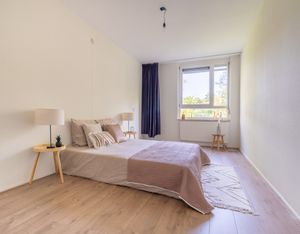 Het appartement is aan de binnenzijde van het complex gelegen waardoor deze uitkijkt over de binnentuin en rustig is gelegen.