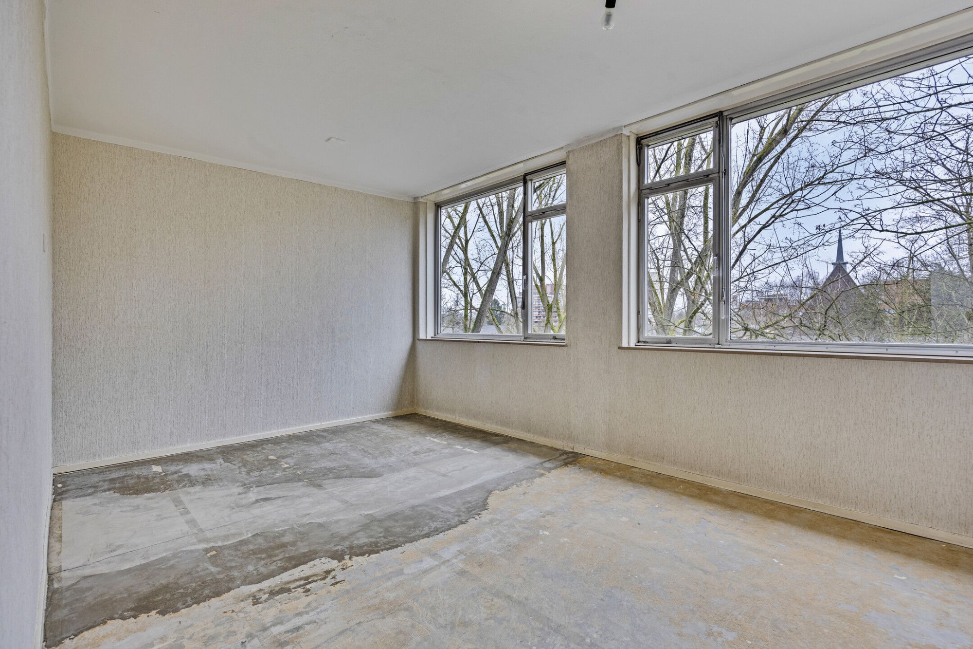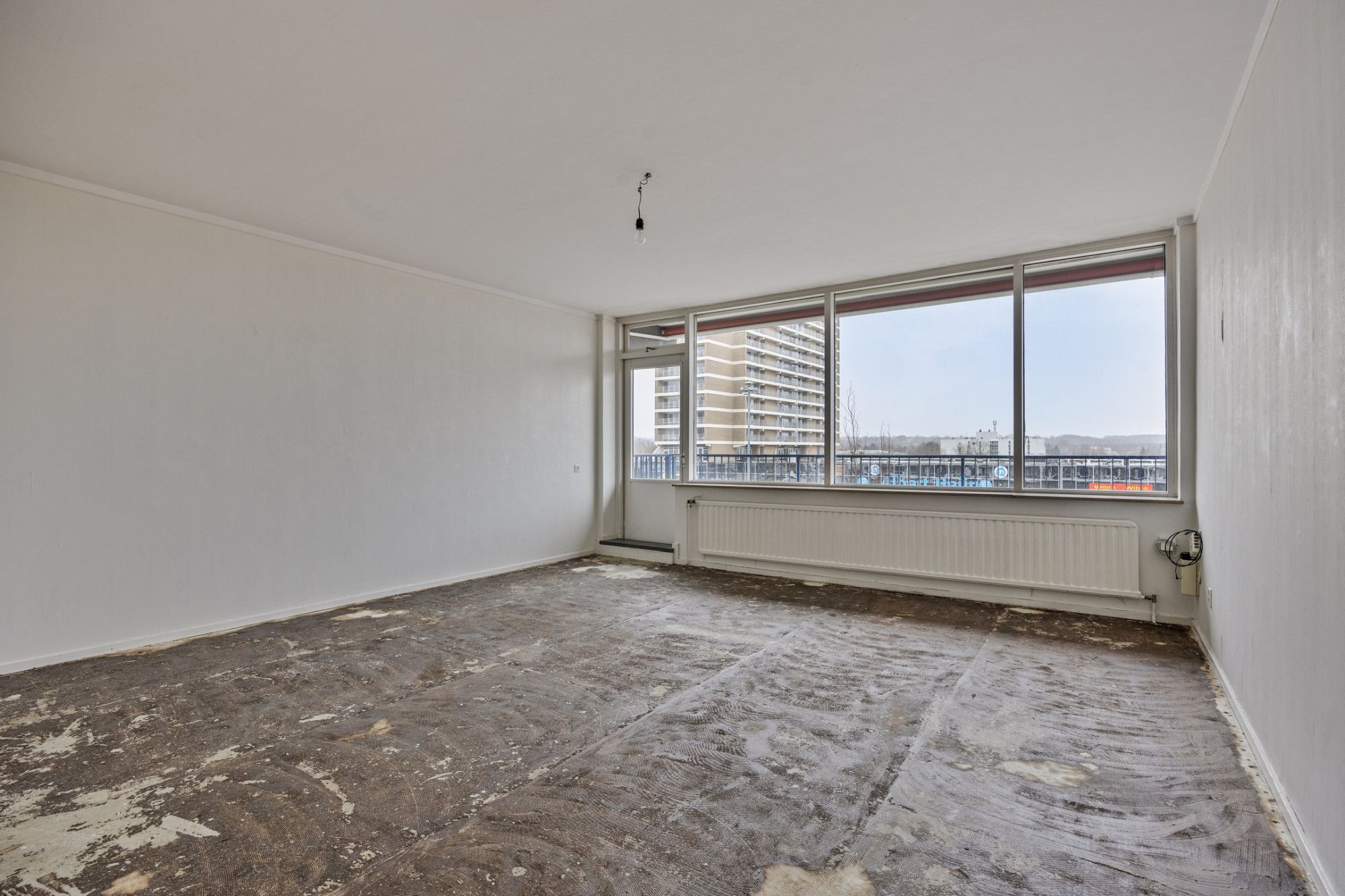 Riante heldere woonkamer (4.97 x 4.97 m) met fraai uitzicht richting 't Loon en toegang tot balkon aan de zonzijde.