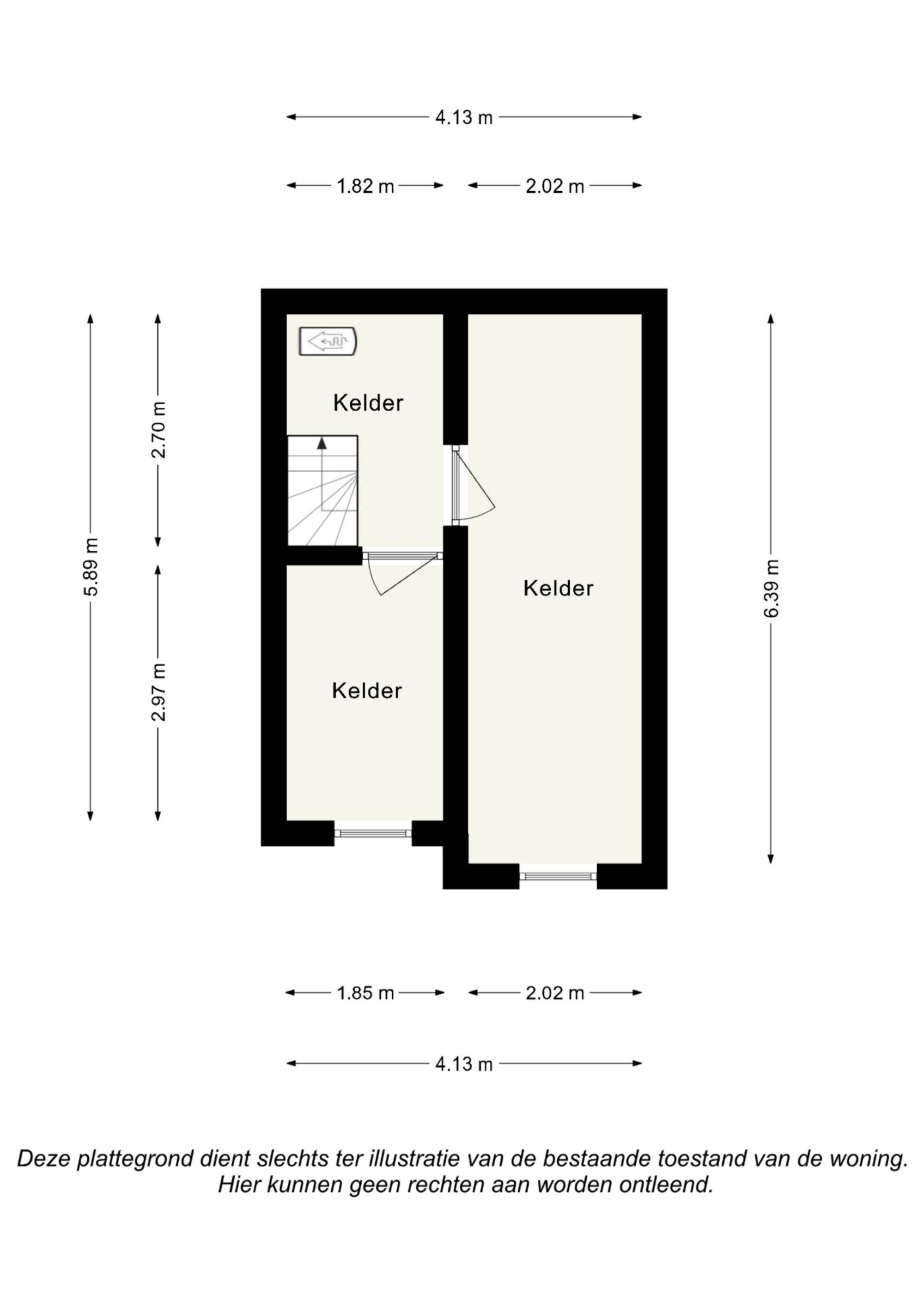 Vanuit de hal te bereiken kelder, de kelder (ca. 25 m2) is verdeeld in drie kelderruimtes.