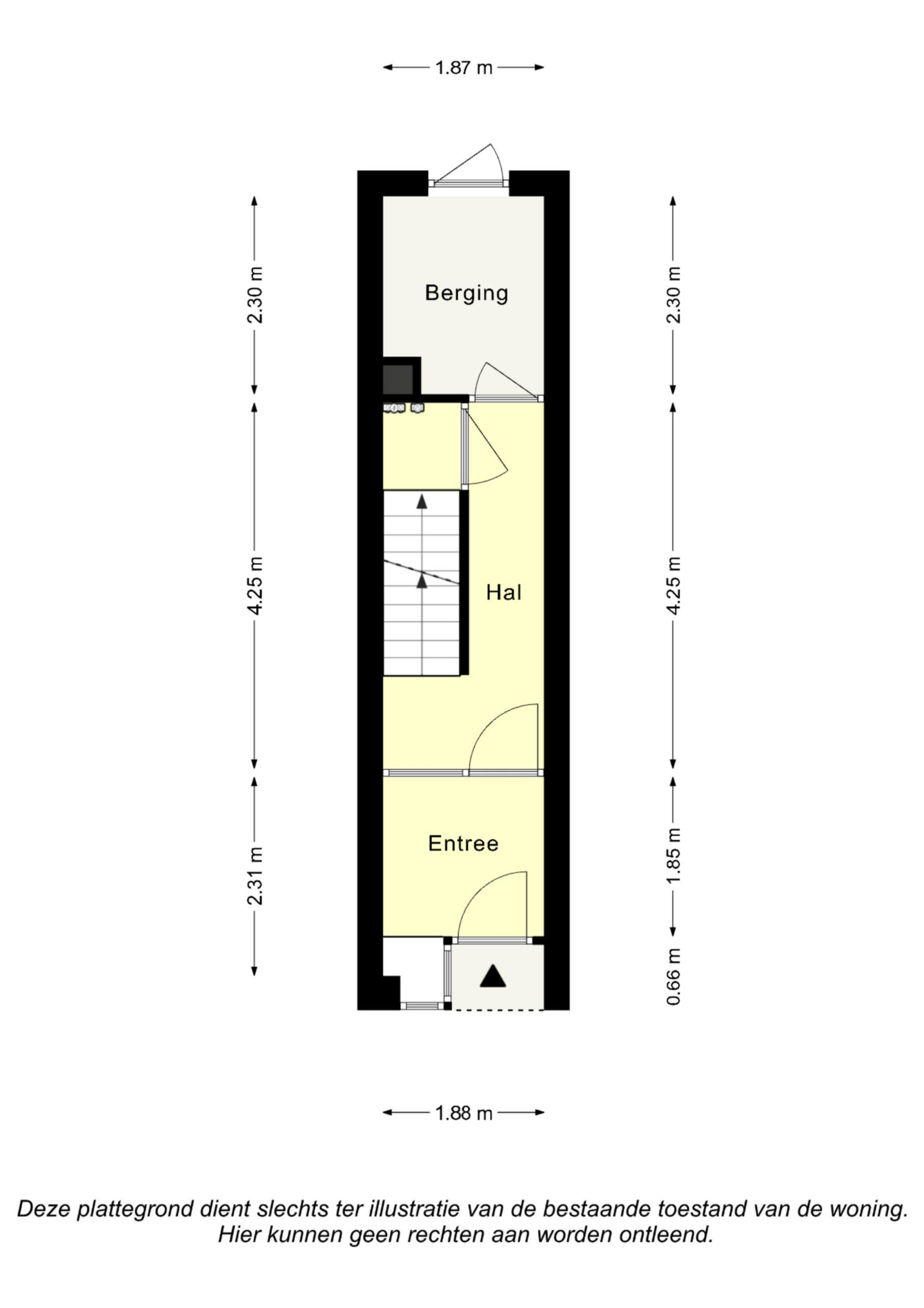De entree-hal met vestibule biedt toegang tot verdieping en berging (2,30 m 1,70 m)