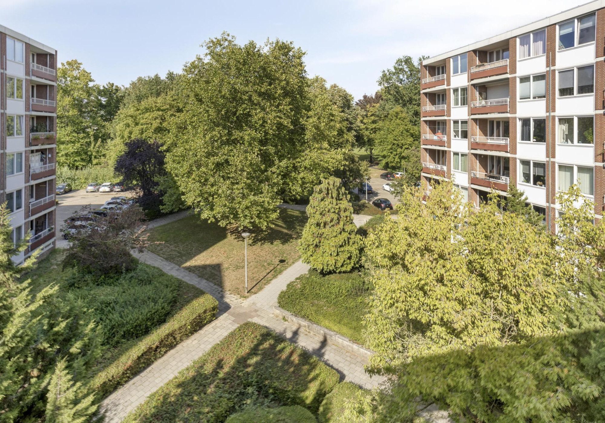 Het complex straalt ruimte en rust uit; de gebouwen liggen in verzorgde groenvoorzieningen. Voor de auto is er altijd plaats: bewoners en bezoekers kunnen ruimschoots vrij parkeren op het parkeerterrein van het complex.