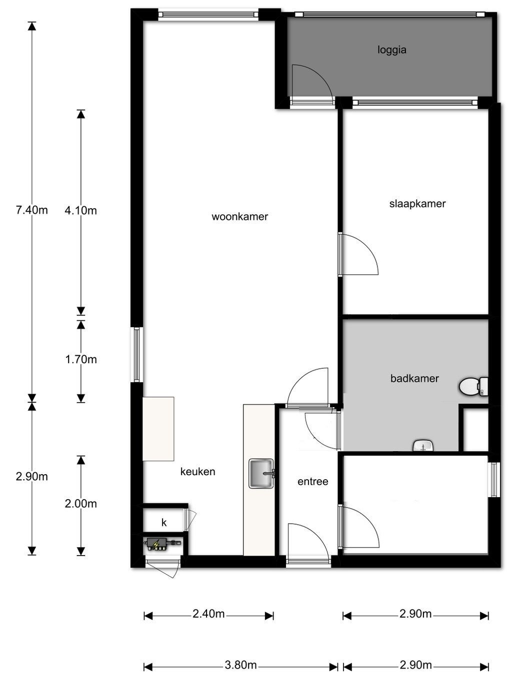 De slaapkamer (ca. 2,89 x 2,03 m) geeft o.a. toegang tot de badkamer.