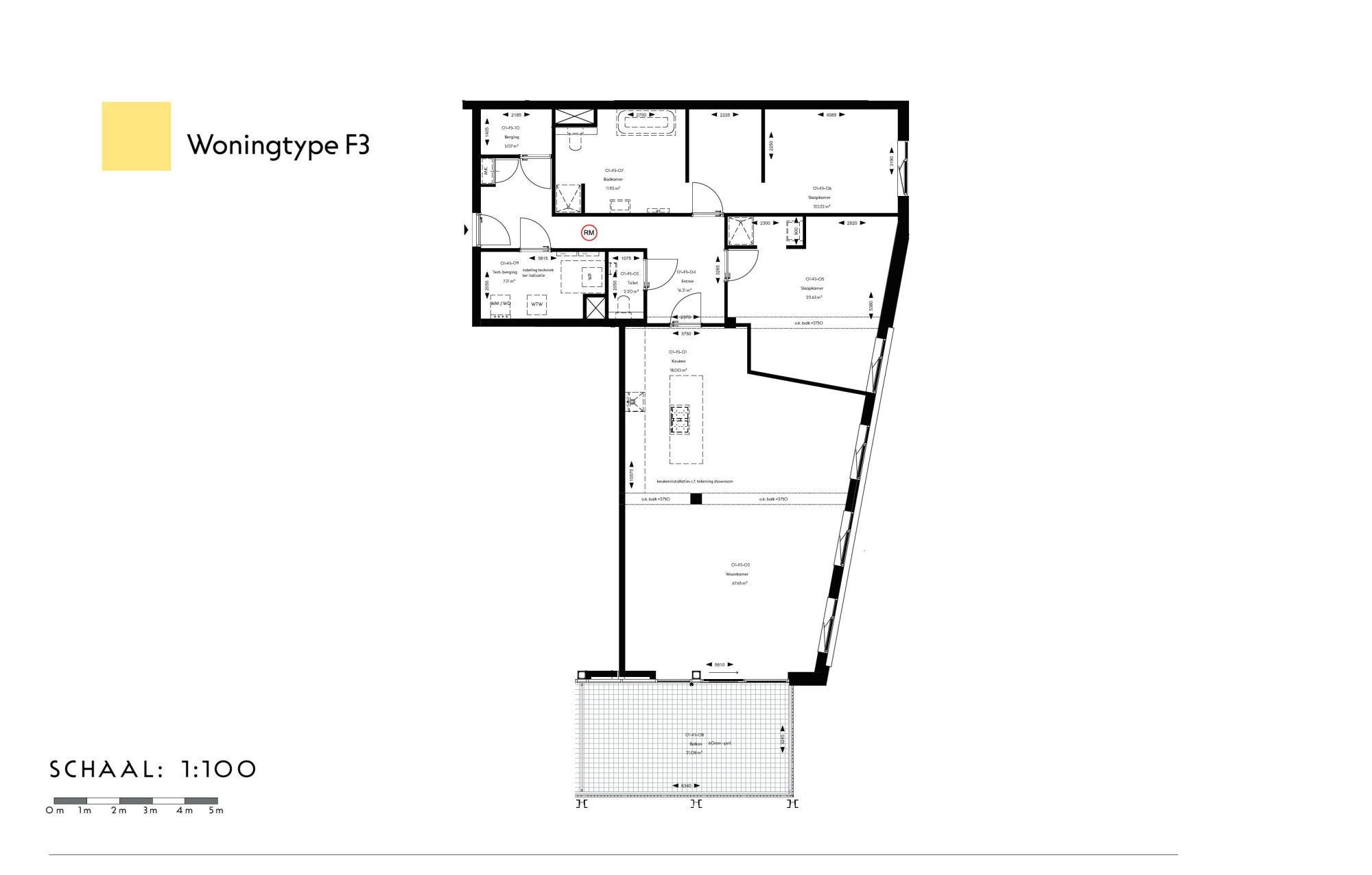 • Complete badkamer inclusief tegelwerk en sanitair (blok D en E), casco badkamer blok F
