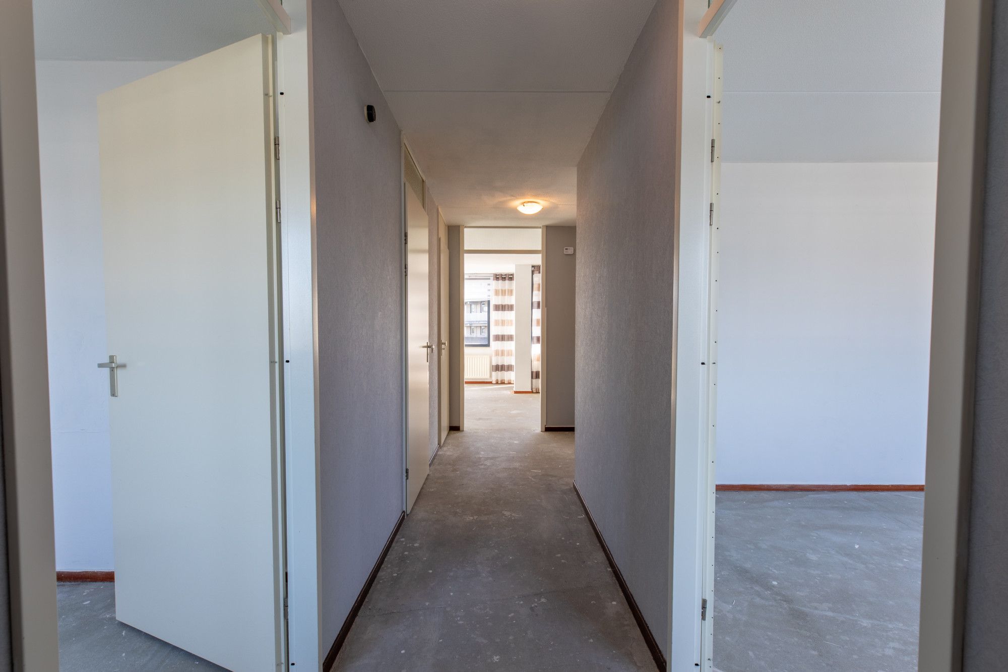 Galerij met toegang tot het appartement. Hal met toegang tot alle vertrekken en techniekkast alwaar CV installatie.