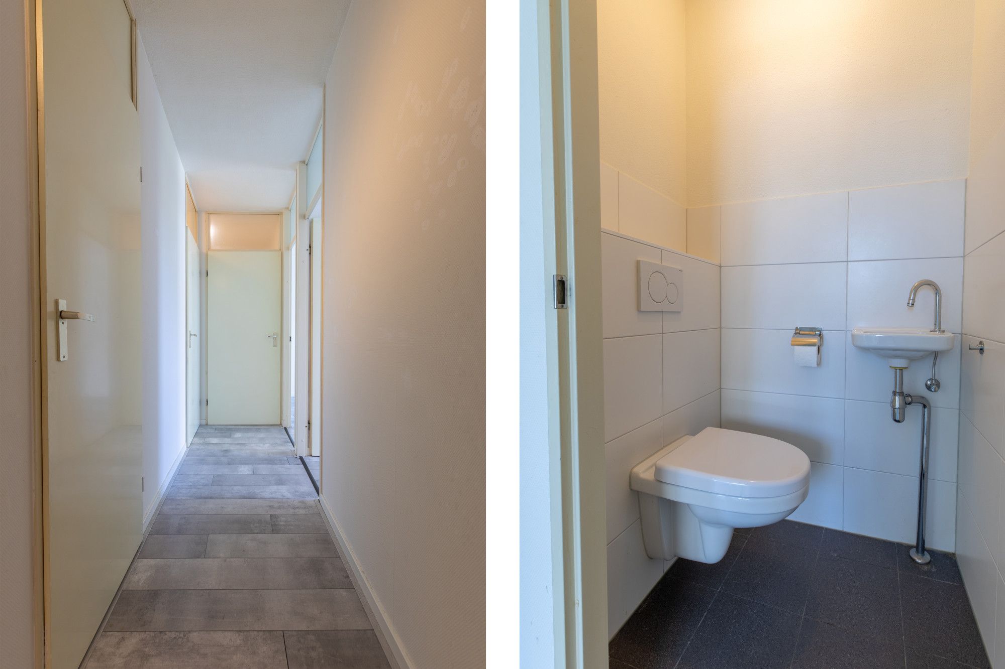 Verdeelhal met toegang tot de appartementen. Entree/hal met toegang tot alle vertrekken, deels betegelde toiletruimte met hangcloset, fonteintje en techniekruimte alwaar CV installatie.