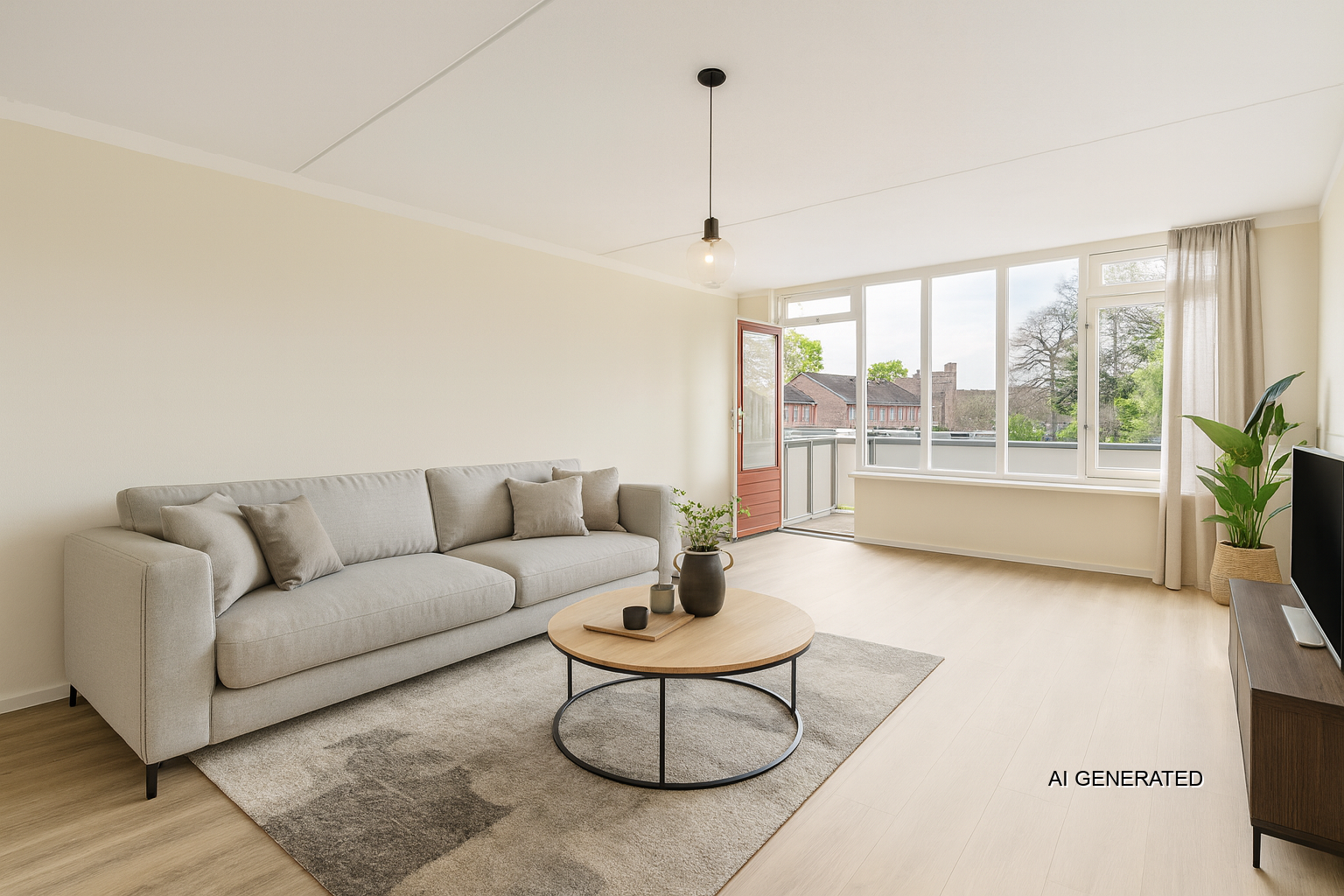 De woonkamer is ruim van afmeting en biedt voldoende ruimte voor zowel een zit- als eetgedeelte. Daarnaast heeft deze toegang tot het balkon op het zuiden.