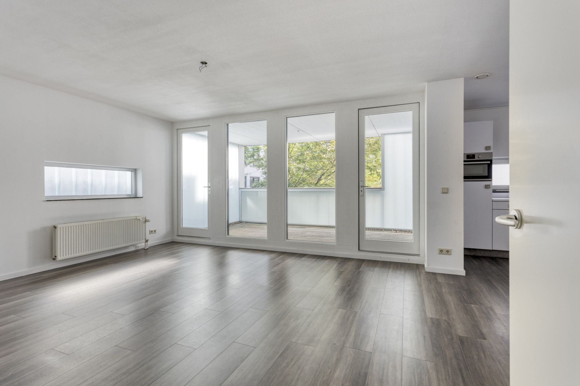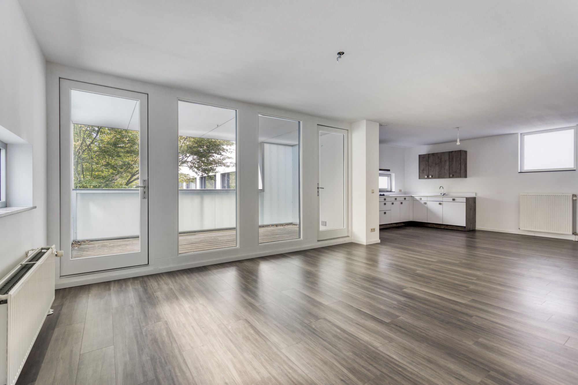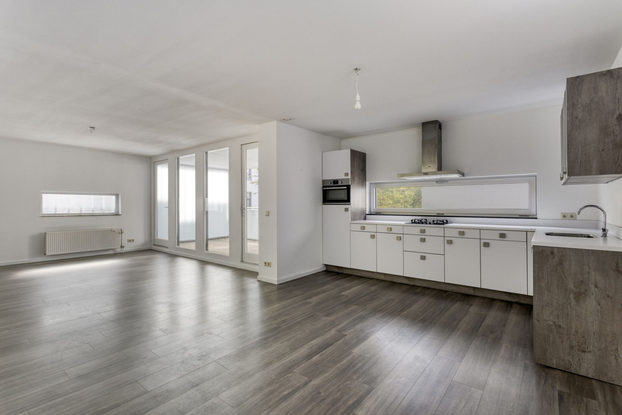 - Riante woonkamer met open keuken van in totaal circa 39 m², met toegang tot de op het zuiden gelegen loggia van bijna 12 m².