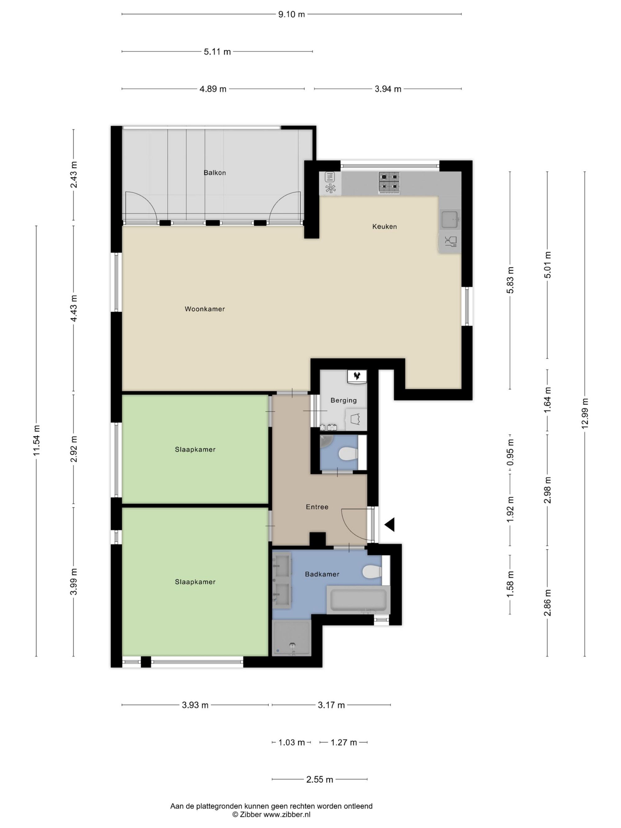 - Twee slaapkamers van respectievelijk bijna 16 m² en ruim 11 m².