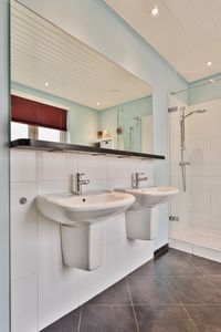 Vanuit de eigen voordeur leidt de brede gang (ca. 18m²) tot aan het trappenhuis naar de ruime fietsenberging (ca. 7m²) en rechtdoor naar de studio (ca. 17m²) met houten vloer, fraaie lichtstraat en open bijkeuken met keukenblok inclusief geïntegreerde koelkast en vriezer. Tevens bevinden zich hier de aansluitingen voor wasmachine en droger, evenals een kapstok en de meterkast inclusief een Aquacell waterontharder. De begane grond leent zich uitstekend voor het realiseren van een kantoor/praktijk aan huis, waardoor thuiswerken gescheiden kan blijven en niet ten koste gaat van het woongenot.