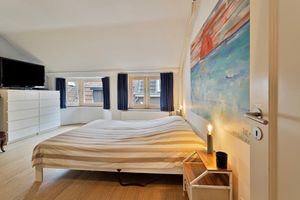 Op de bovenste verdieping is slaapkamer III (ca. 27m²) te bereiken via een vaste trap. Een heus loft met een kamerbrede dakkapel voorzien van isolerende HR++ beglazing, een volledige geïsoleerd en geïnspecteerd (en duurzaam bevonden) dak en 2 Velux dakramen, welke uitzicht geven over de daken van de omliggende panden en de torens van de Sint-Janskerk. Deze loft beschikt verder over een wastafel en Multi-kleur LED verlichting boven de rij aan opbergkasten. Tevens is in deze kamer een kast waarin de opstelling van de Cv-ketel (merk: Vaillant HR Combi, eigendom & bouwjaar 2019) netjes is weggewerkt.