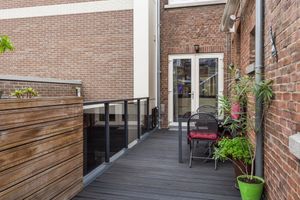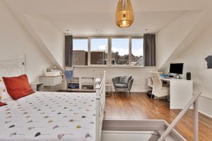 Vervolg het prachtige, houten trappenhuis met veel raampartijen voorzien van kozijnen met isolerende HR++ beglazing. Alle verdiepingen hebben over de gehele lengte geluidsdichte muren. Vanaf de overloop met houten vloer is er toegang tot het tweede dakterras (ca. 10m²), alwaar men in alle rust kan genieten van al het moois dat deze prachtige woonomgeving te bieden heeft. Aan de straatzijde is de masterbedroom (ca. 22m²) gesitueerd, welke beschikt over een authentiek betegelde haard en erker, voorzien van houten kozijnen met isolerende HR++ beglazing. In deze kamer is veel opbergruimte aanwezig. De overloop geeft ook toegang tot een tweede toilet, voorzien van wandcloset en fonteintje. Tevens is vanuit de overloop slaapkamer II (14m²) te bereiken, welke beschikt over een ingebouwde muurkast.