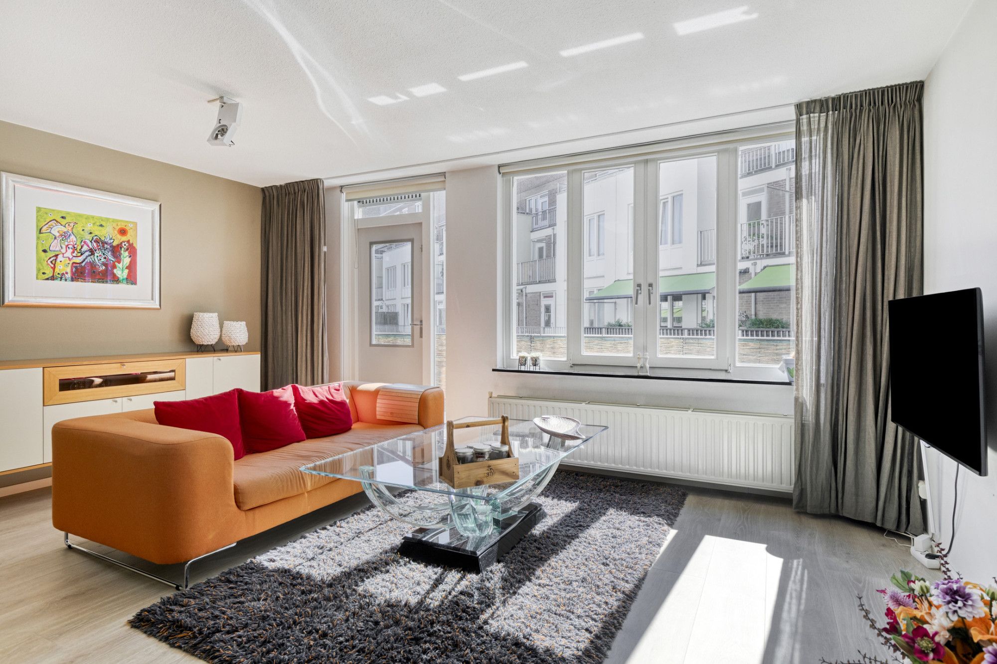 Het appartement is voorzien van hardhouten kozijnen met isolerende beglazing.