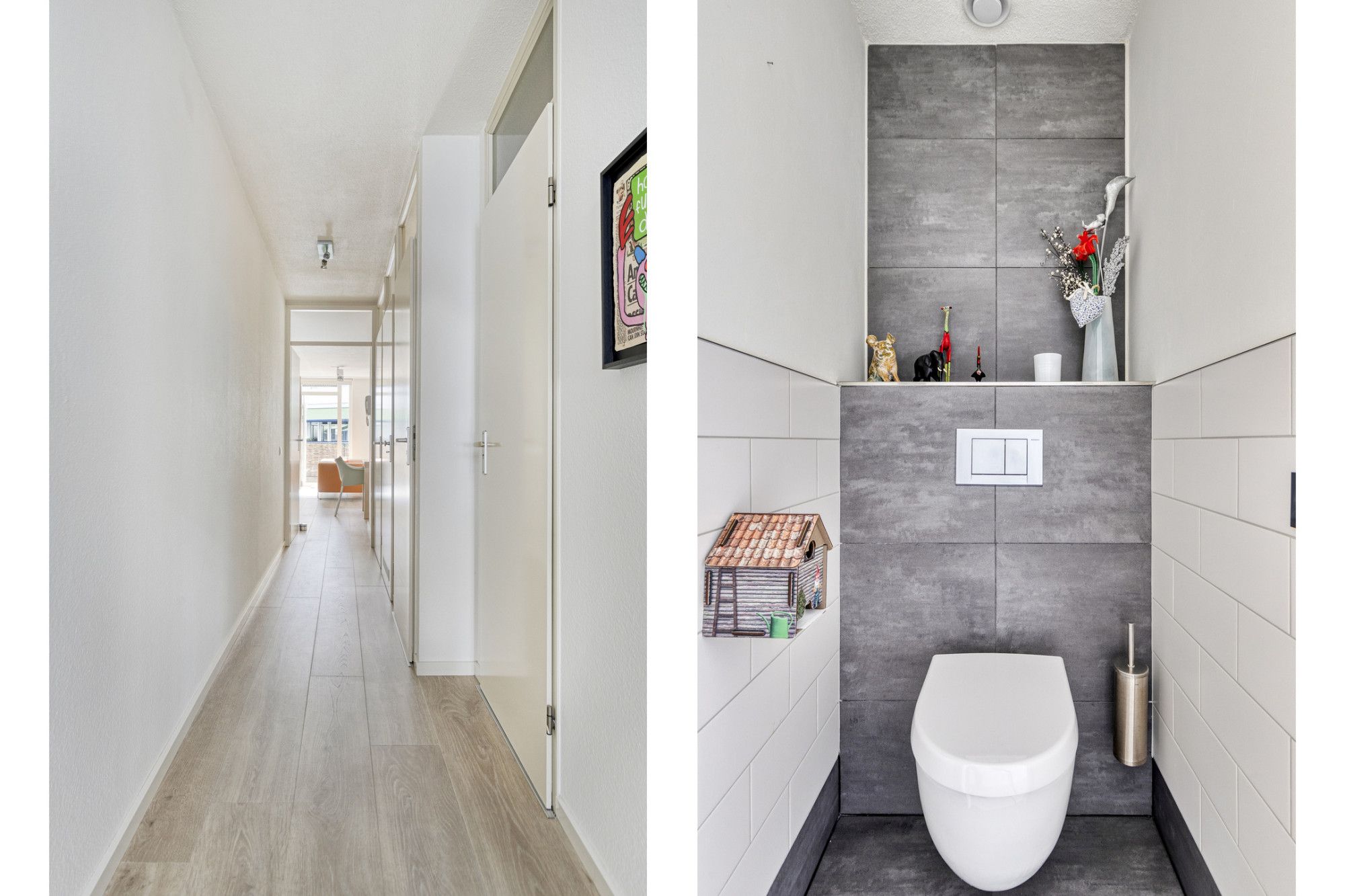 Deels betegelde toiletruimte met zwevende uitvoering.