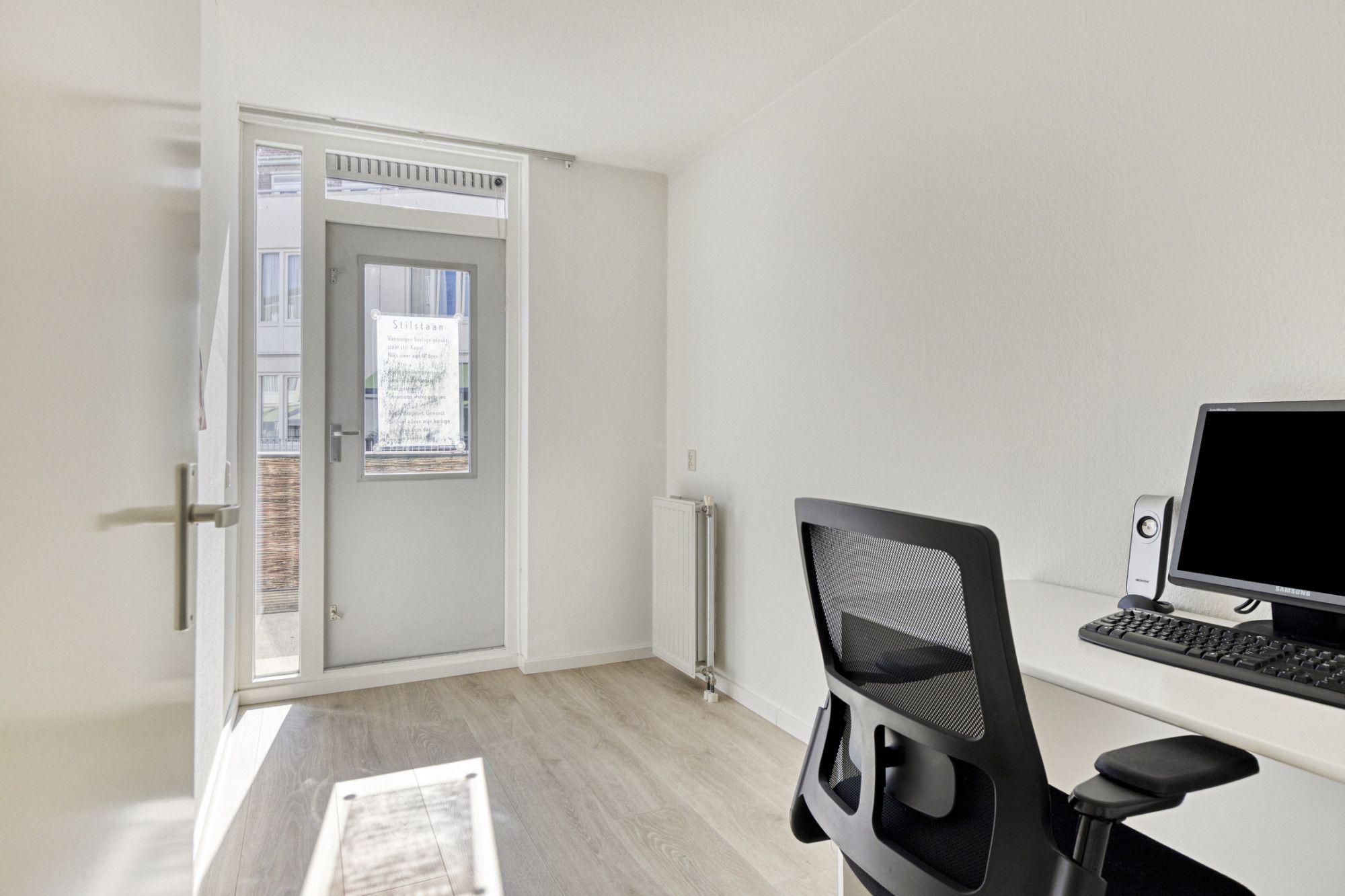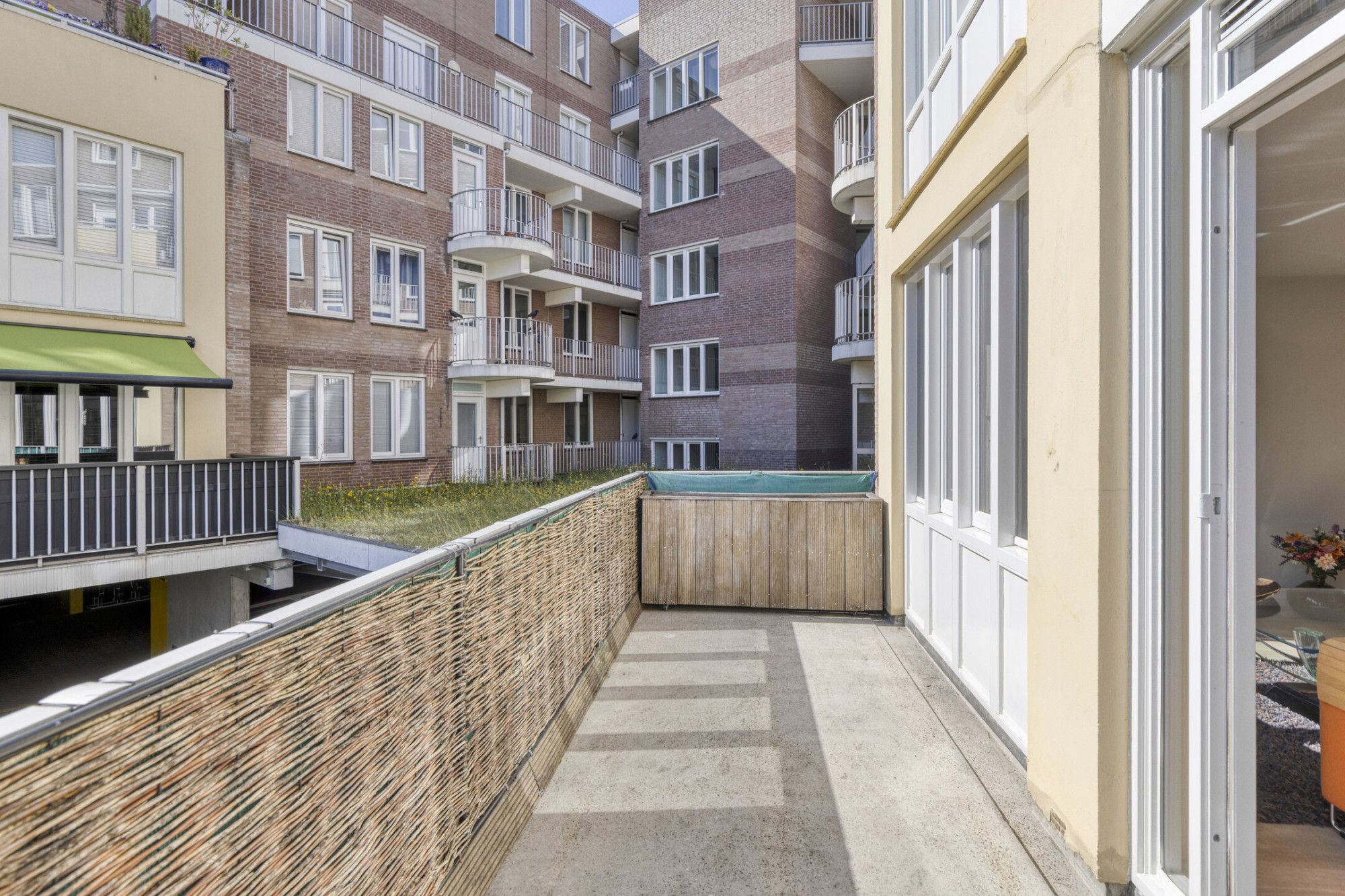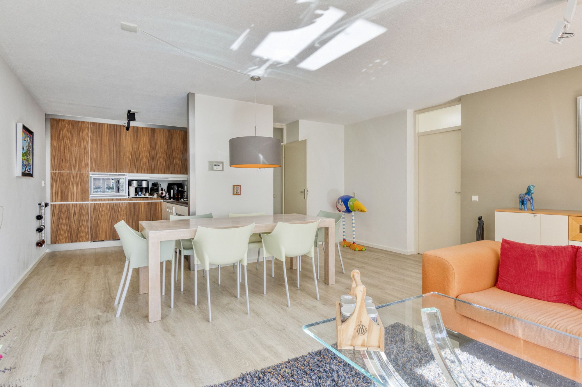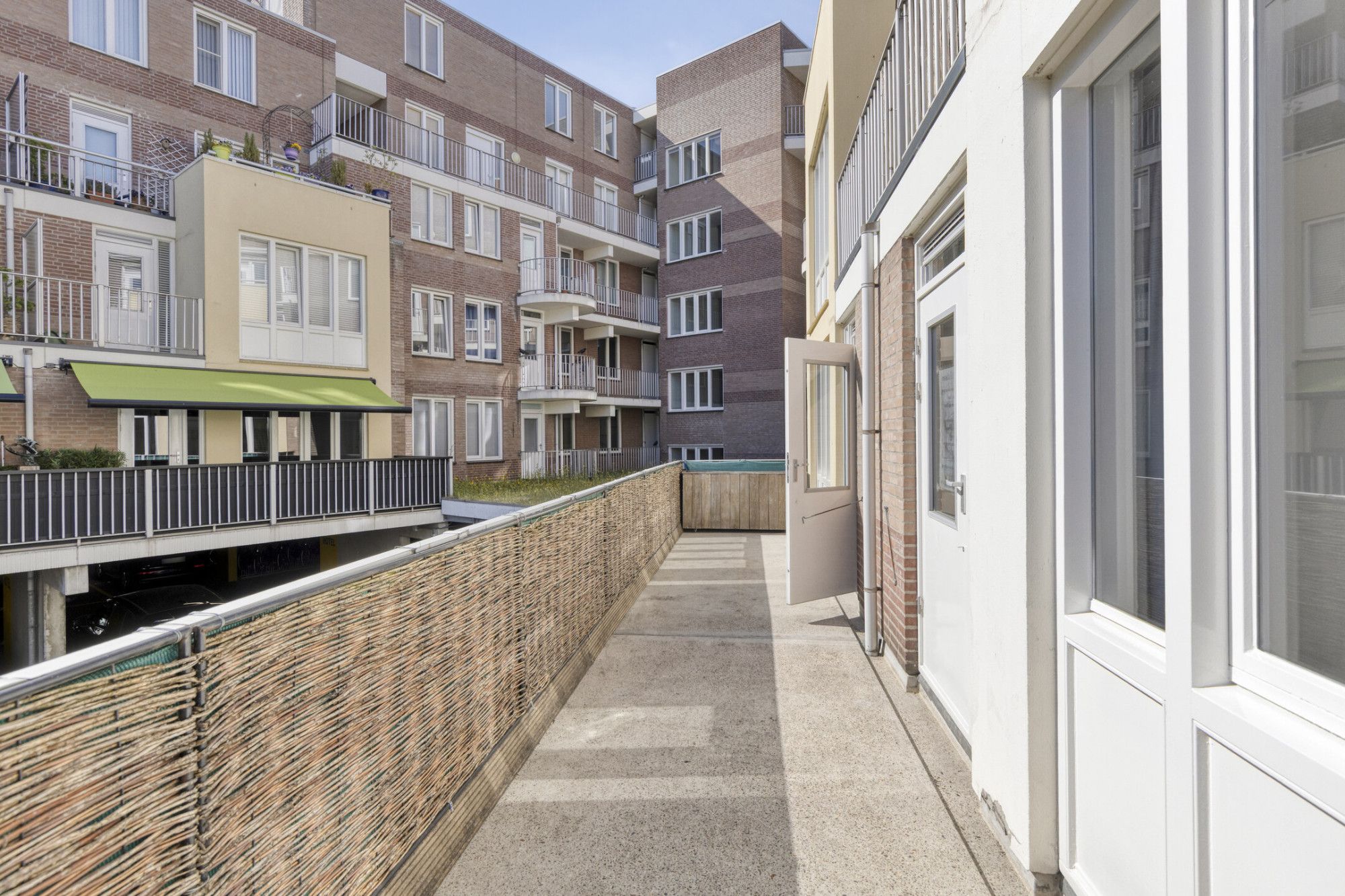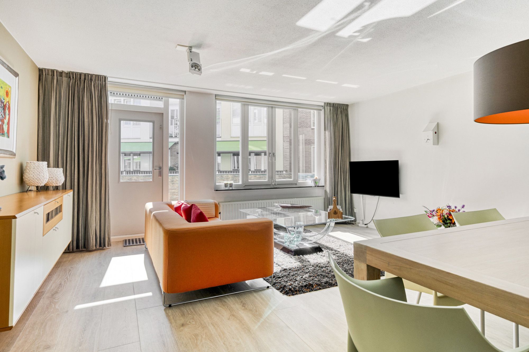 Het appartement beschikt over een ruime woonkamer en heeft vanwege grote raampartijen optimale lichtinval en buitencontact.