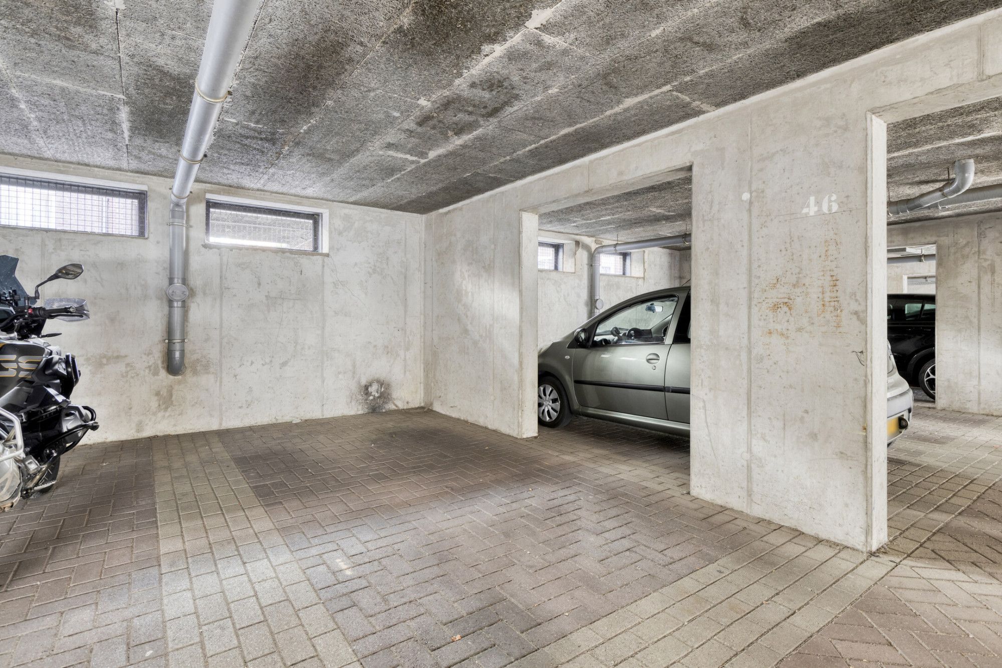 De overdekte en afgesloten privé parking (parkeerplaats 46) bevindt zich onder het complex.