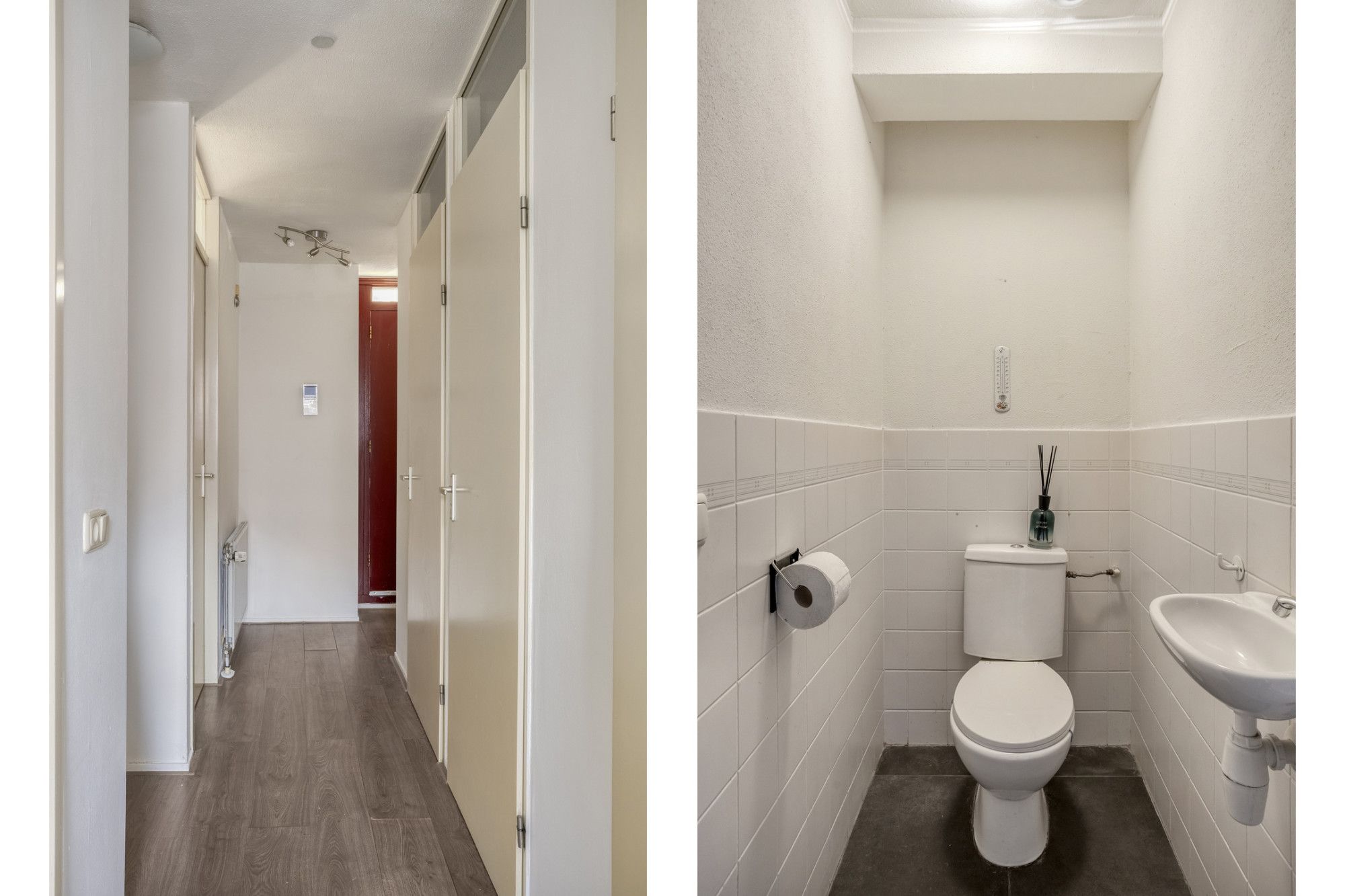 - Toiletruimte, voorzien van staand closet (duoblok) en fonteintje.