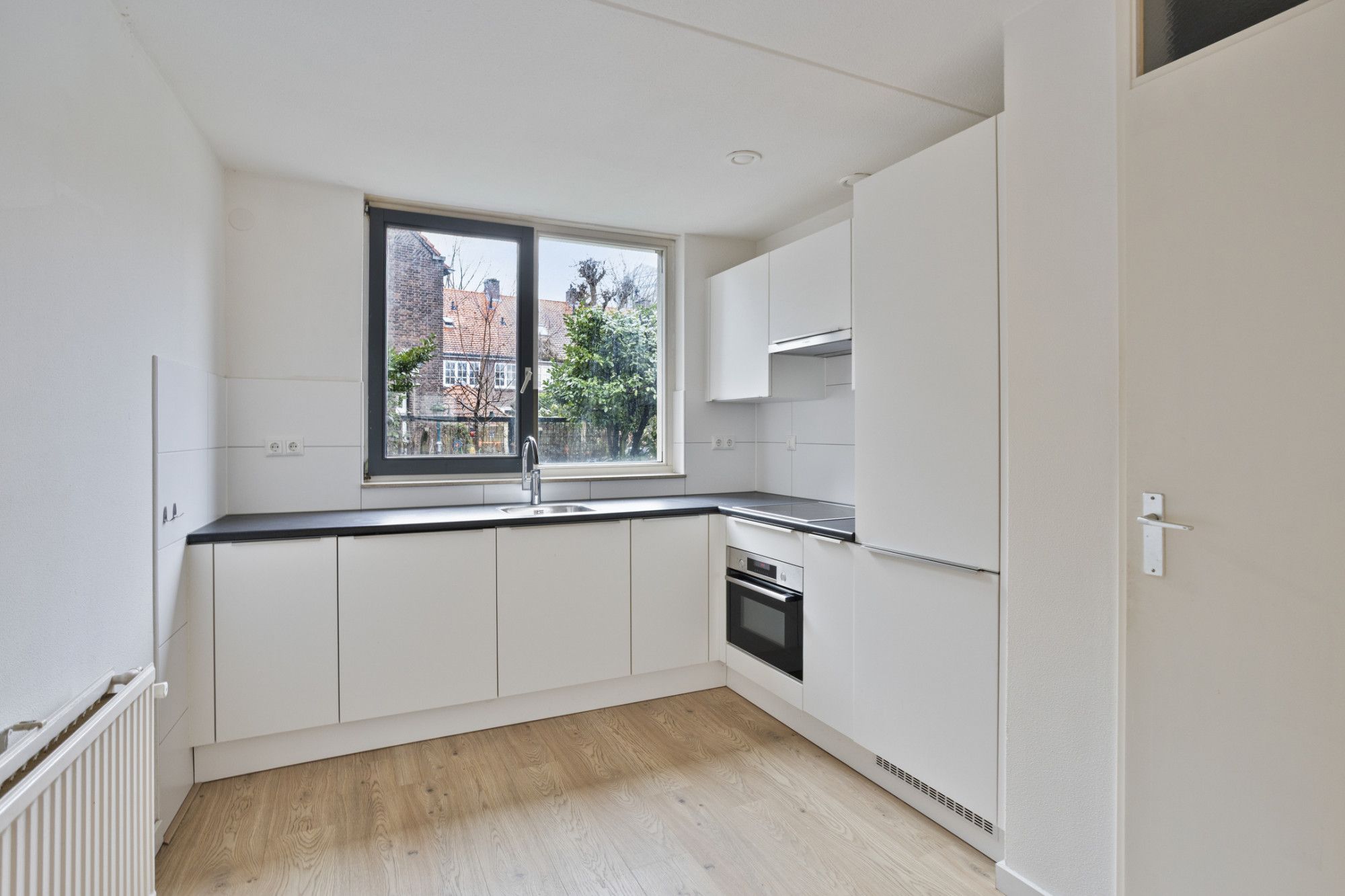 - Gerenoveerde open keuken van ca. 10 m² met inbouwapparatuur.