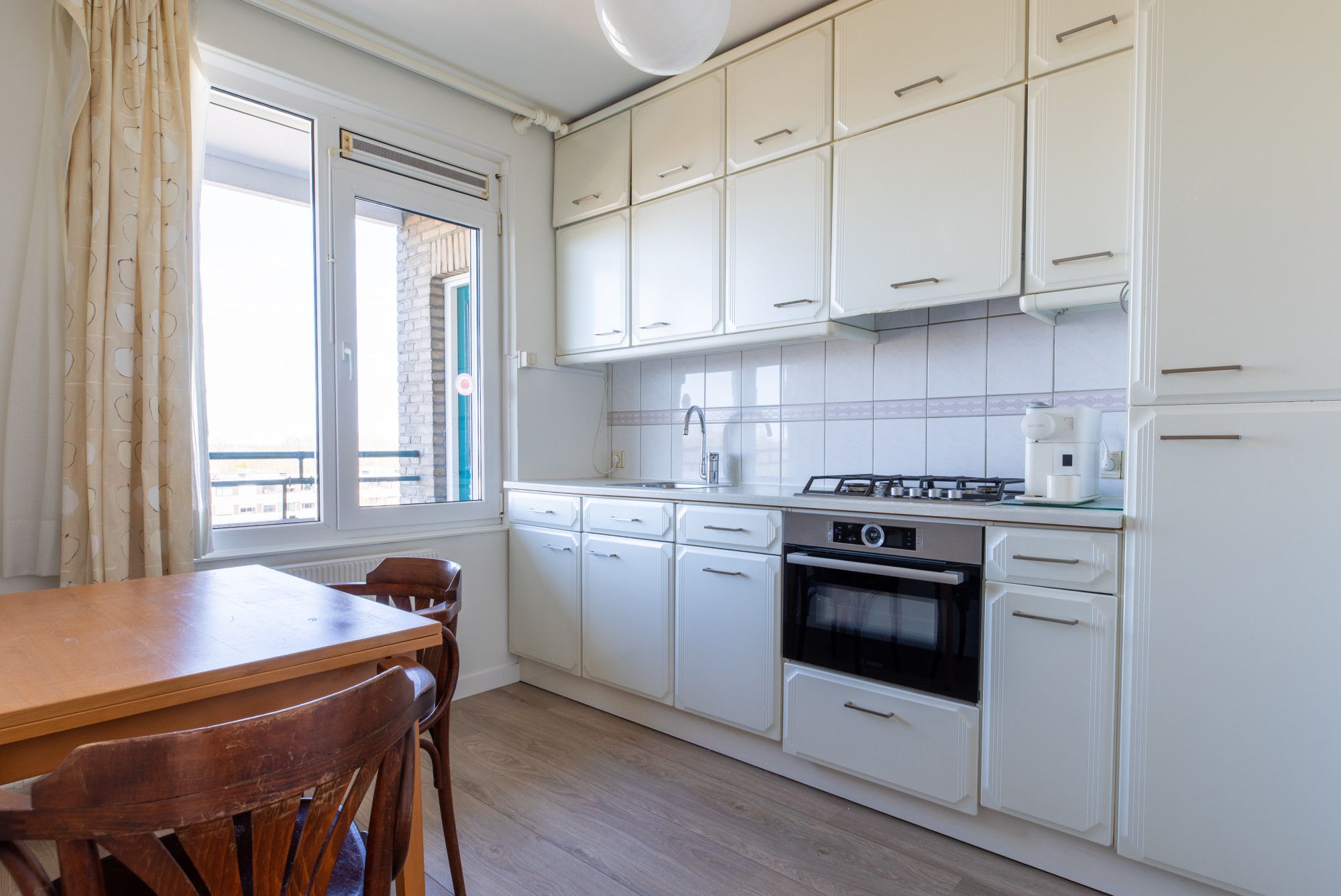 - Separate keuken van ca. 8 m² met een witte keukenopstelling met diverse apparatuur.