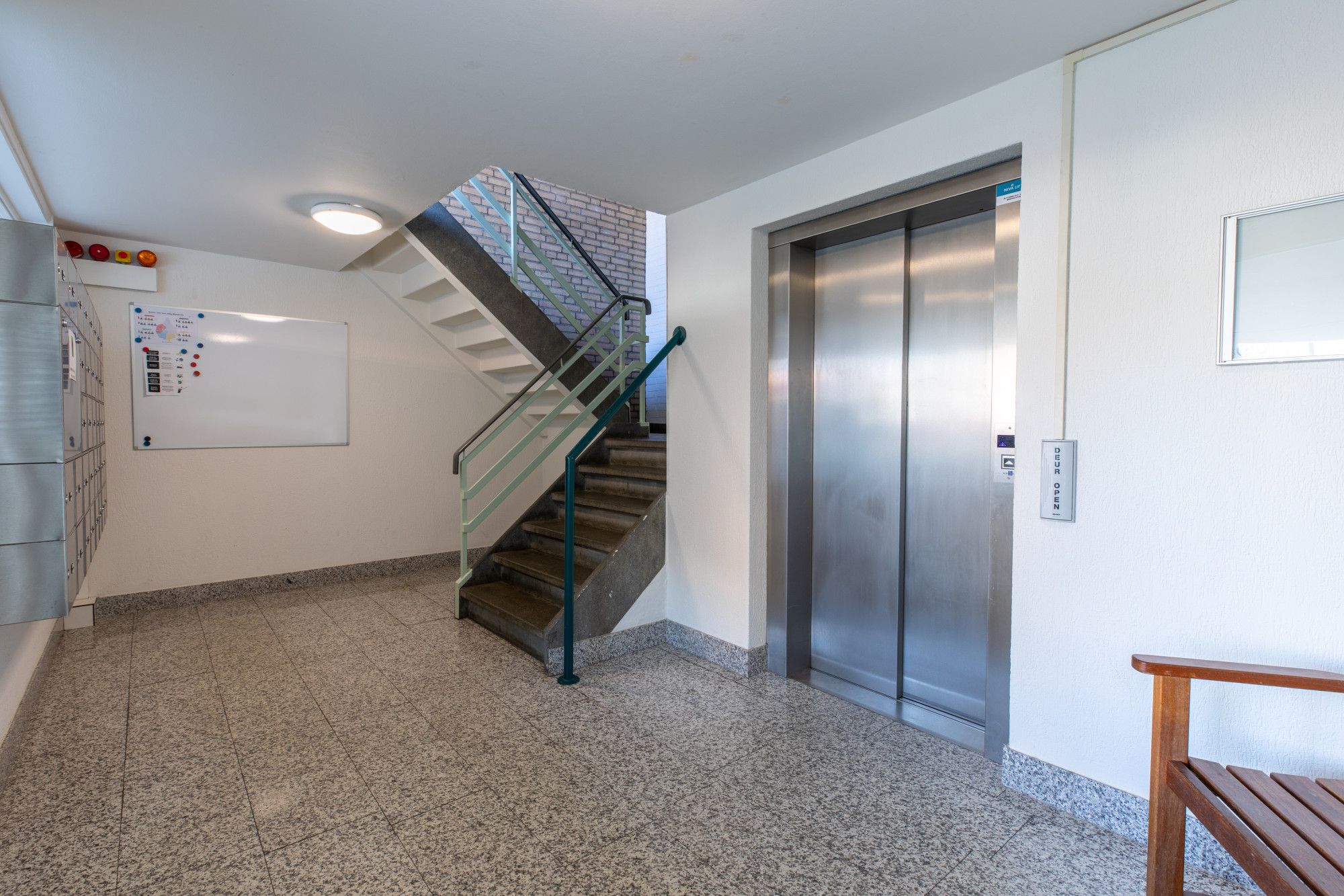 - Gezamenlijke entree met bellentableau, video-com installatie, brievenbussen, lift en trappenhuis.