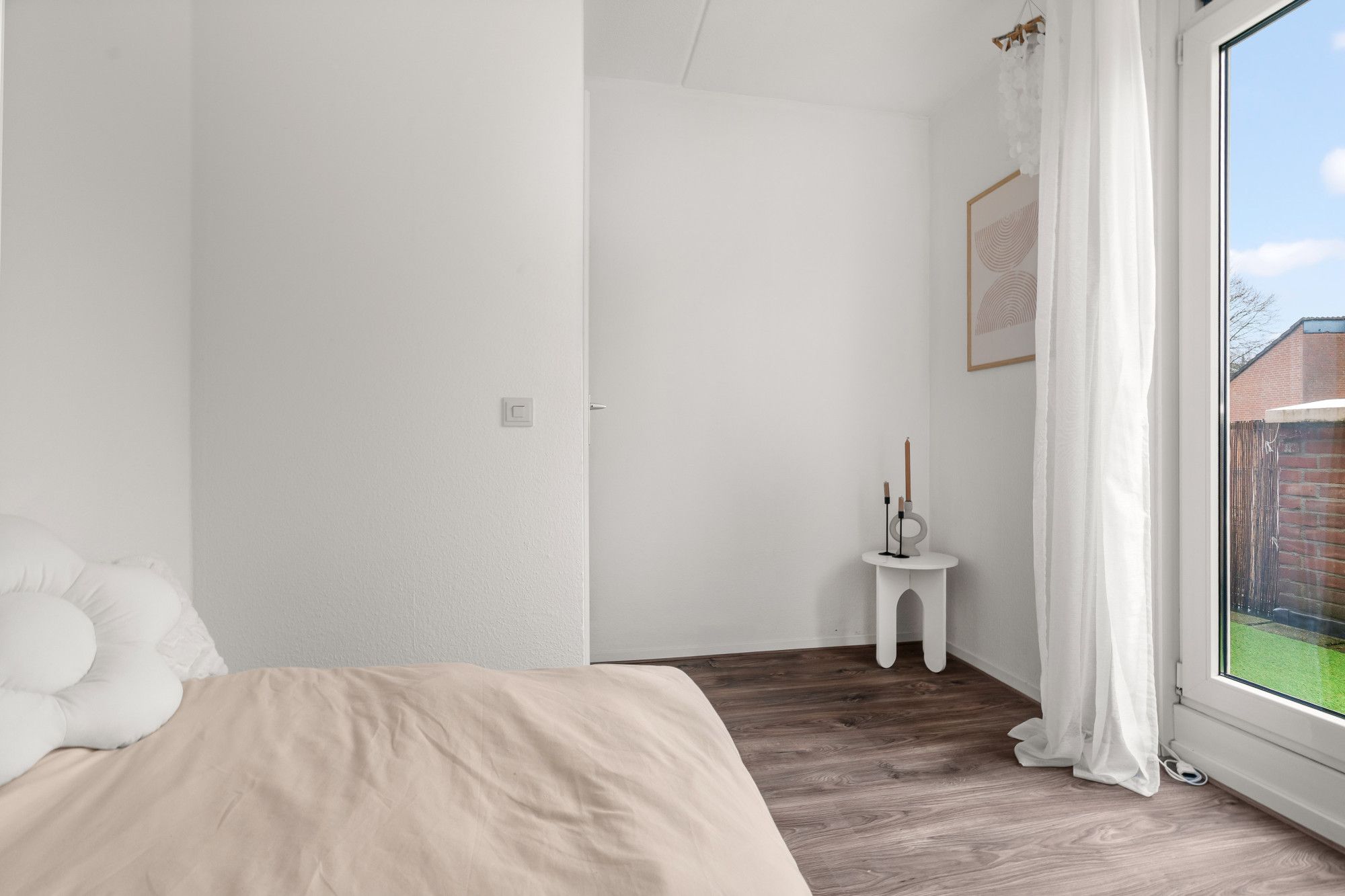 - Slaapkamer 1: ca. 8 m² voorzien van laminaatvloer en biedt toegang tot het balkon aan de achterzijde.