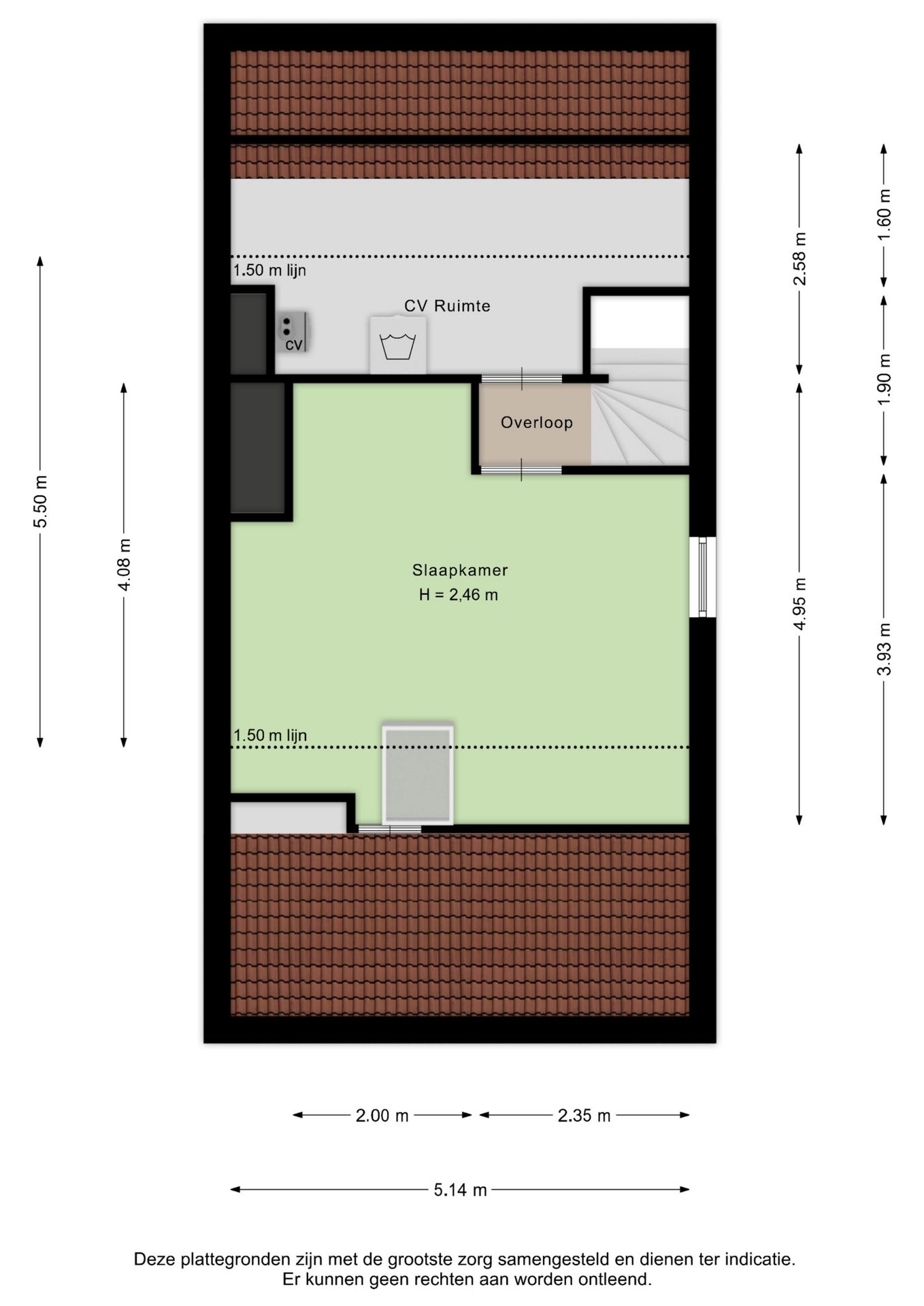 De overloop biedt toegang tot washok/berging met standplaats cv-installatie en de ruime tweede slaapkamer ca. 18 m².