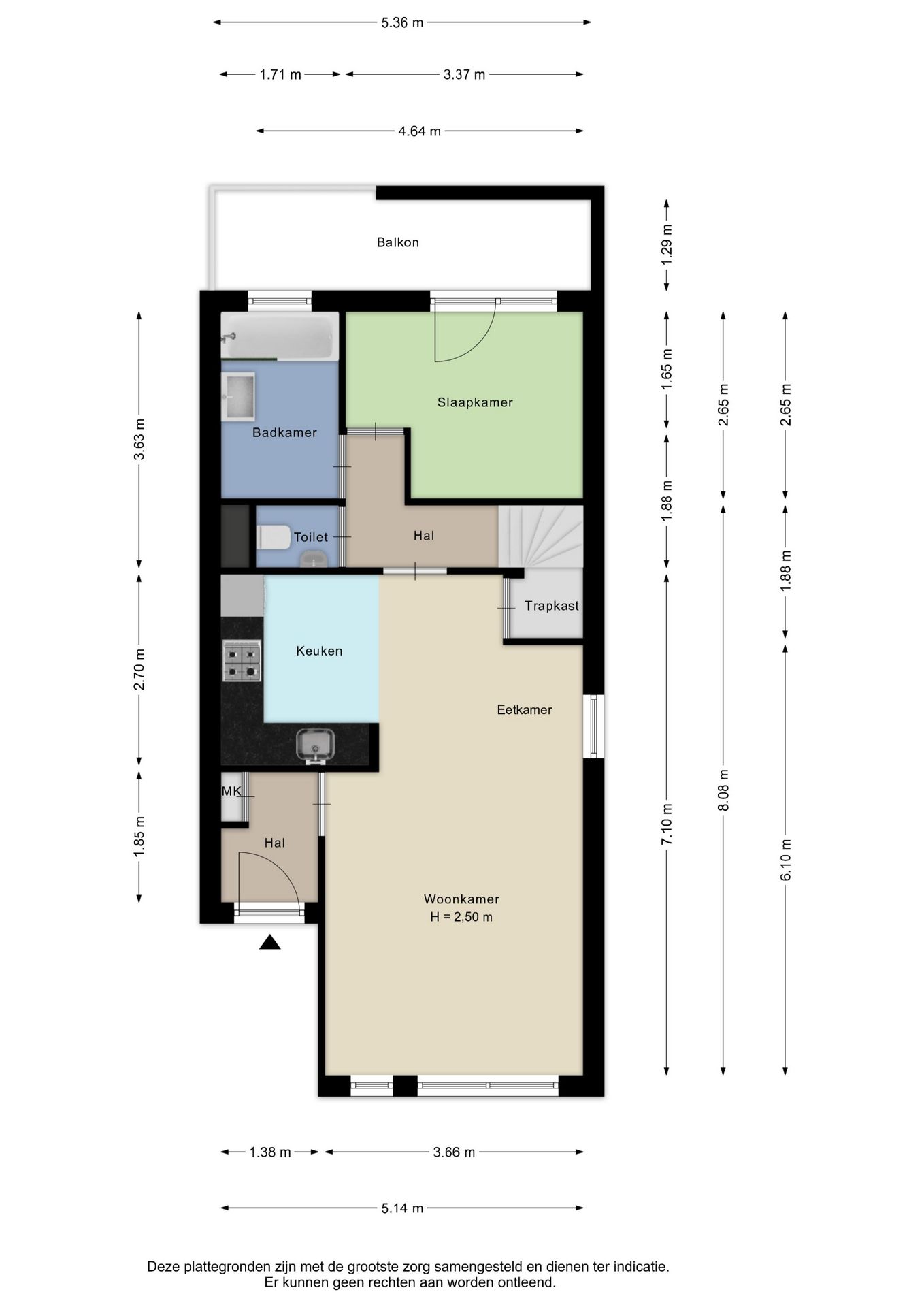 Alle door ons kantoor verstrekte informatie omtrent onroerende zaken, moet beschouwd worden als een uitnodiging om in onderhandeling te treden, en is geheel vrijblijvend! Alle vermelde maten en afmetingen zijn slechts bij benadering. Aan deze beperkte info kunnen geen rechten worden ontleend. Indien in enige documentatie of op enige website informatie staat die niet overeen komt met de werkelijkheid, dan geldt de feitelijke situatie waarin de woning zich bevindt, zoals koper deze tijdens de bezichtiging heeft kunnen waarnemen, en wordt de woning in deze feitelijke situatie/staat verkocht. Een (eventueel) bijgevoegde plattegrond dient uitsluitend als globale indicatie/visualisatie. Hieraan kunnen uitdrukkelijk geen rechten worden ontleend.