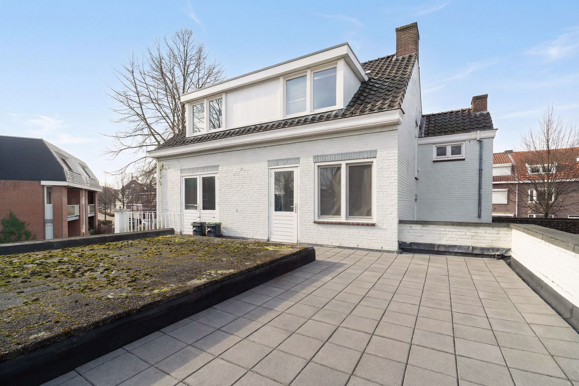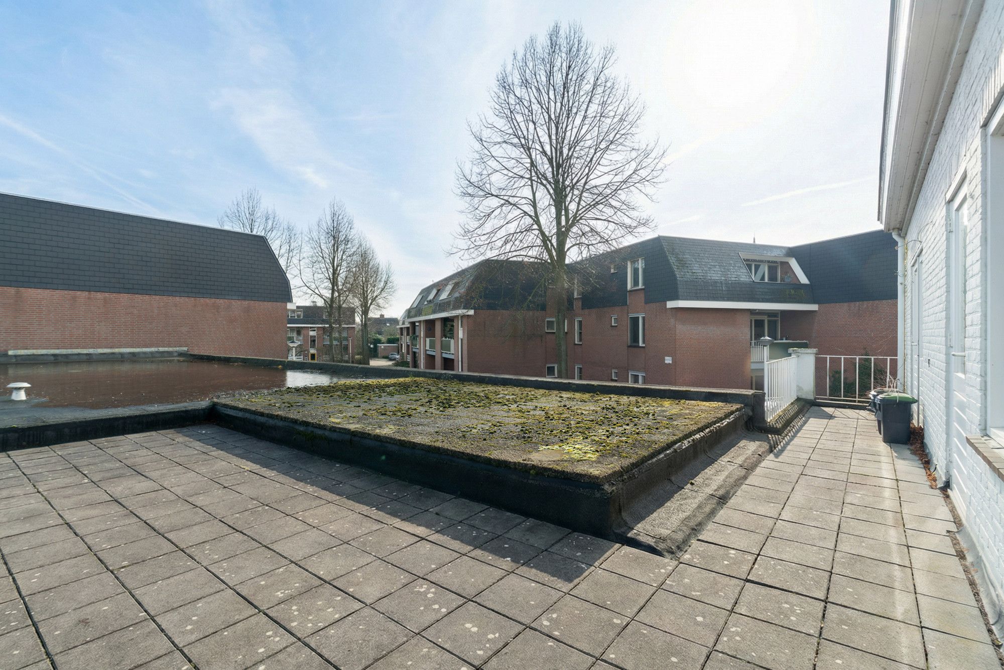 Een absolute meerwaarde van dit appartement is het ruime dakterras, direct bereikbaar vanuit de woonkamer. Hier geniet u van een fijne buitenruimte met volop privacy — een plek waar u in alle rust kunt ontspannen, een kop koffie kunt drinken in de ochtendzon of juist lang kunt natafelen op een zomerse avond. Dankzij de gunstige ligging en het directe contact met de leefruimte vormt het dakterras een natuurlijk verlengstuk van de woonkamer.