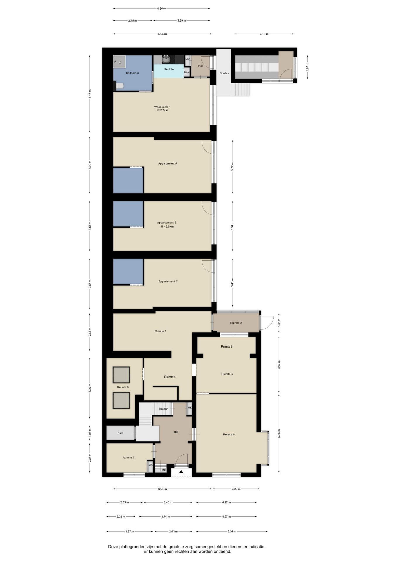 Alle door ons kantoor verstrekte informatie omtrent onroerende zaken, moet beschouwd worden als een uitnodiging om in onderhandeling te treden, en is geheel vrijblijvend! Alle vermelde maten en afmetingen zijn slechts bij benadering. Aan deze beperkte info kunnen geen rechten worden ontleend. Indien in enige documentatie of op enige website informatie staat die niet overeen komt met de werkelijkheid, dan geldt de feitelijke situatie waarin de woning zich bevindt, zoals koper deze tijdens de bezichtiging heeft kunnen waarnemen, en wordt de woning in deze feitelijke situatie/staat verkocht. Een (eventueel) bijgevoegde plattegrond dient uitsluitend als globale indicatie/visualisatie. Hieraan kunnen uitdrukkelijk geen rechten worden ontleend.