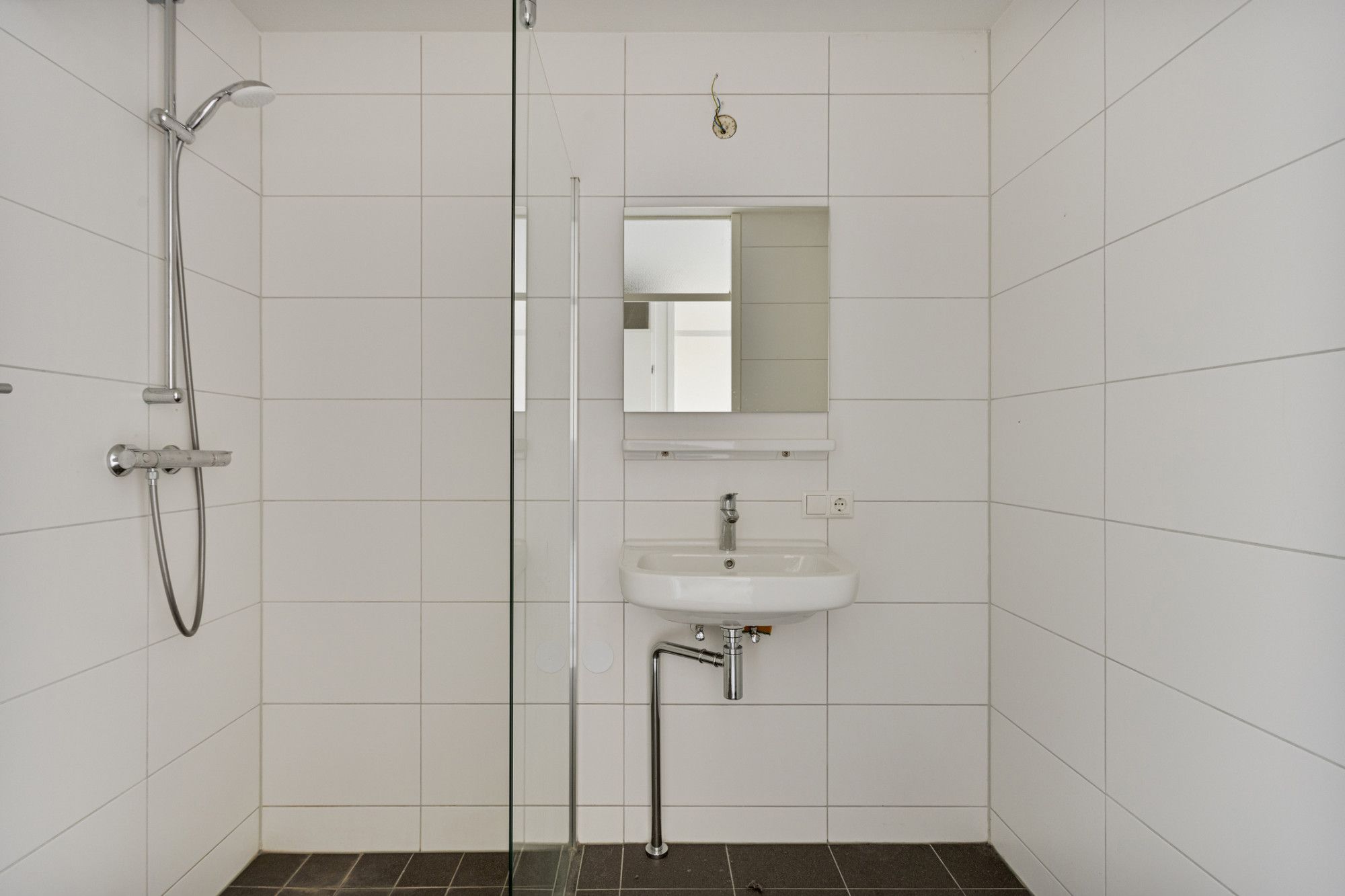 Als u doorloopt vanuit de gang, komt u bij de overige ruimtes: een praktische inpandige berging met de cv-installatie, de geheel betegelde badkamer met vaste wastafel en douche, een separaat toilet, en als laatste de twee slaapkamers.